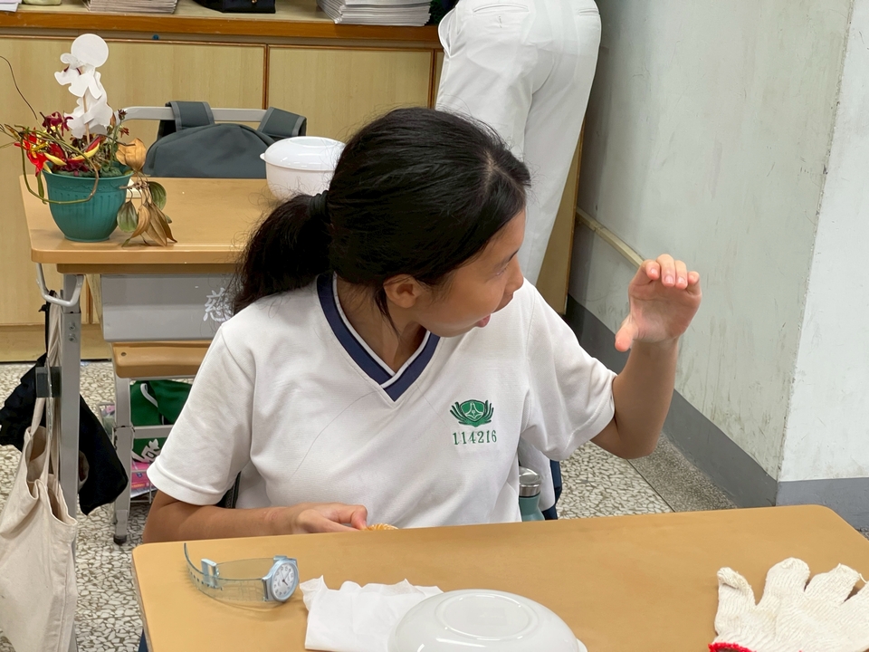 今天的慈懿日,因為下午有【手護洄瀾】的活動;所以我們家聚只有30分鐘。瀞嬅媽媽就跟孩子說明今天的活動內容和明天我們園遊會會義賣的食物,其中一項是蔬食小漢堡由信宇哥哥負責製作,當孩子們聽到價格時,羿璇同學就跟隔壁的同學比了一個這麼『小』的手勢,在剎那間就被長親爸給拍下,留下一個美好的足跡。