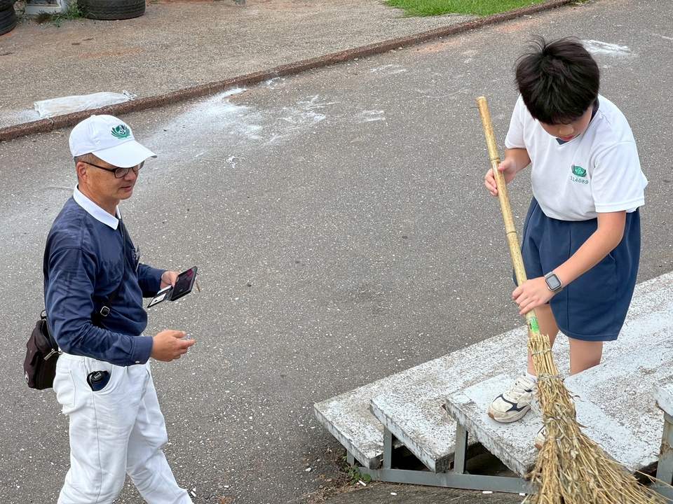 我們班上今年打掃的區域為濟慈路旁的河堤,經過簡單的開幕儀式後,一行人浩浩蕩蕩地帶著打掃用具往目標前進,到達定點後由江老師將任務分配後,各自就往負責區域打掃。在打掃中我們發現孩子們在家裡很少有在清潔,雖然說慈誠懿德爸媽是不能幫他們打掃的,但是看在我們這些爸媽眼裡,真是很難受!後來爸媽就親身示範要如何清掃、要如何把角落的垃圾掃出來、要如何分類等等、、雖然在孩子的眼裡可能只是一個簡單的掃地,但是要如何快速整潔又是一門大學問。好比靜思語中的【掃地、掃地、掃心地】所以掃除也是一種修行,一門學問。