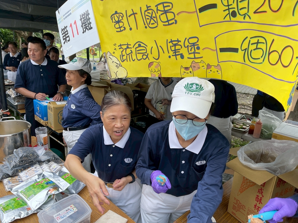 我們班上在一個月前就討論出要義賣的品項,很感恩每年義賣活動,桃園區的朱師兄都會捐出他們在網路上熱銷的品項(蜜汁滷蛋)給我們義賣,而且數量不拘,全部捐出。記得有一年蛋價飆升,而且市場上也不容易買到蛋,朱師兄由他人口中知道慈中園遊會已經圓滿,為什麼長欽爸爸沒有找他拿物資呢?他就跟長欽爸聯絡,我們給他解釋說:蛋價太貴、而且你又不拿本錢,我們不好意思。朱師兄跟我們說:只要是慈濟的事,就是他的事。真是一位大菩薩阿!
