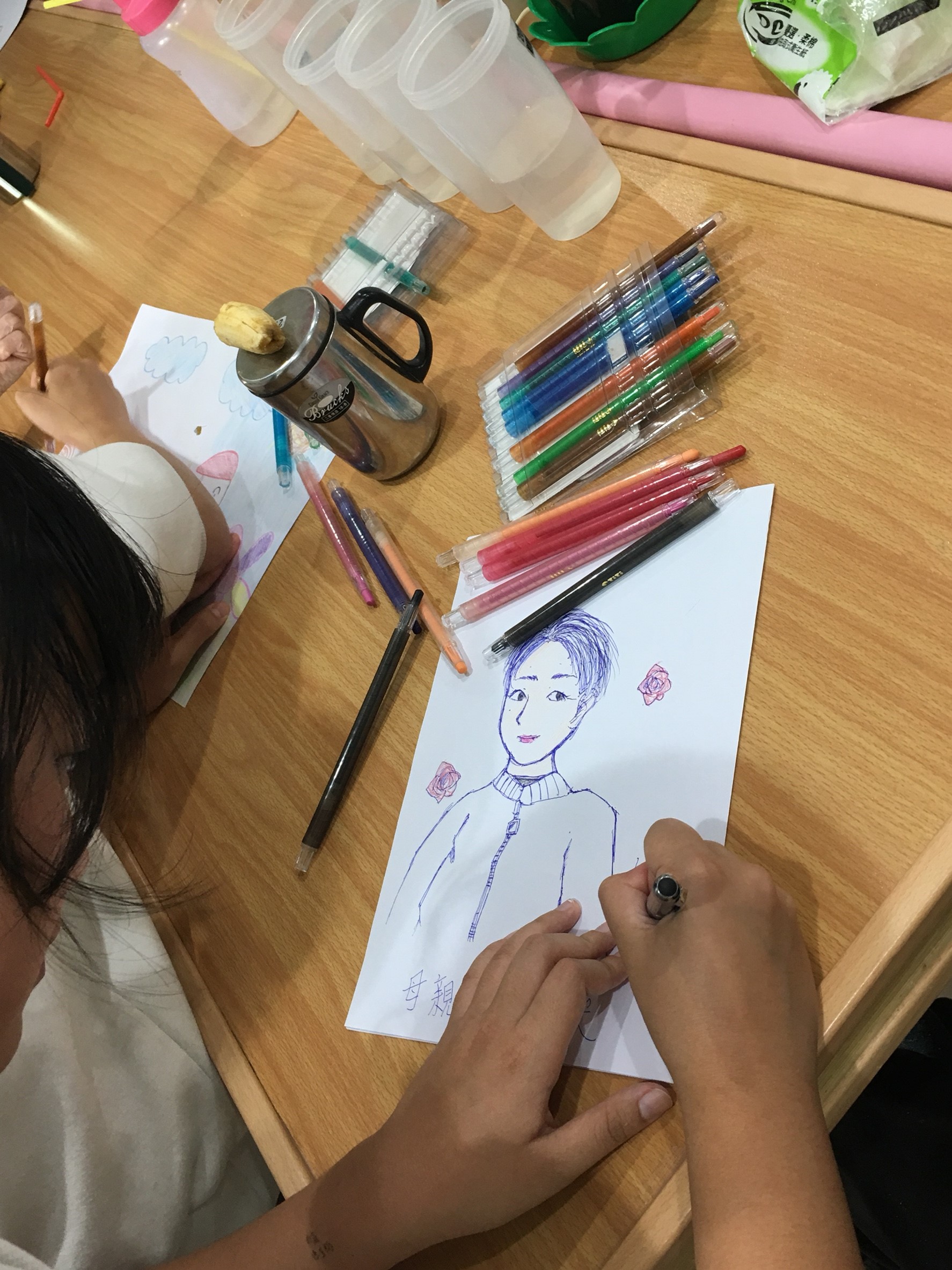 在慈誠爸爸、懿德媽媽們的帶動下,氣氛熱絡起來。一起作畫,也有了共同的話題。