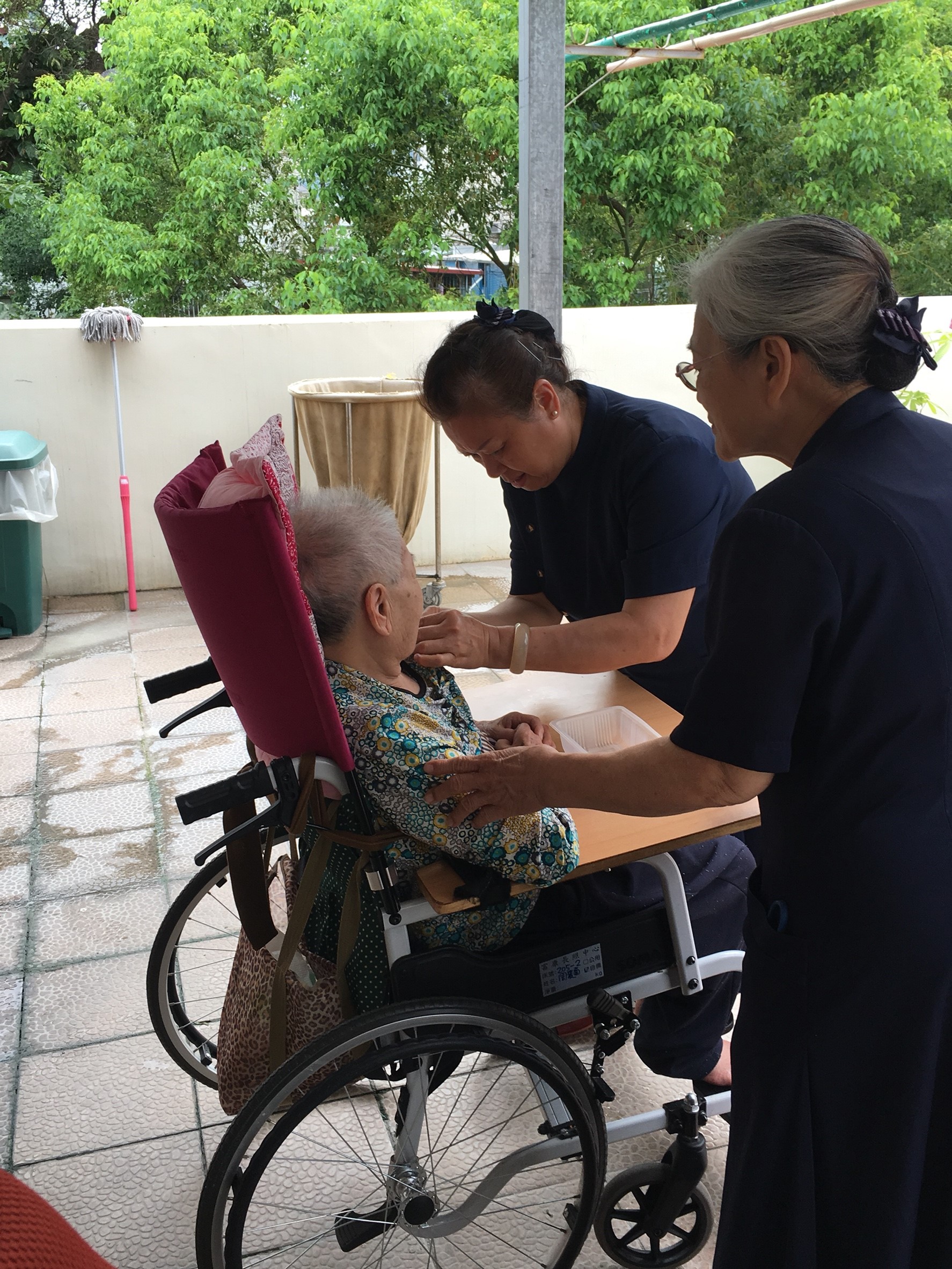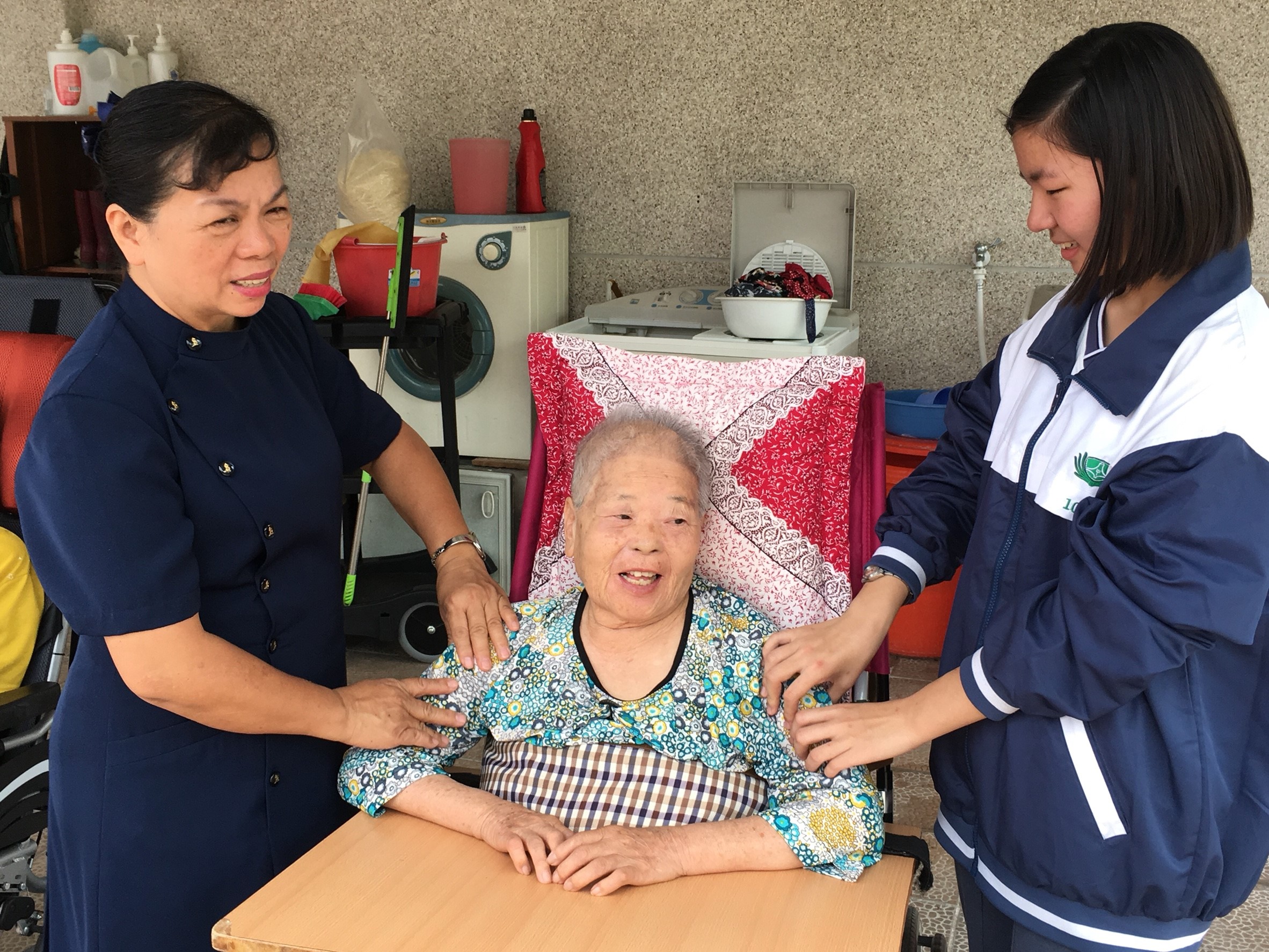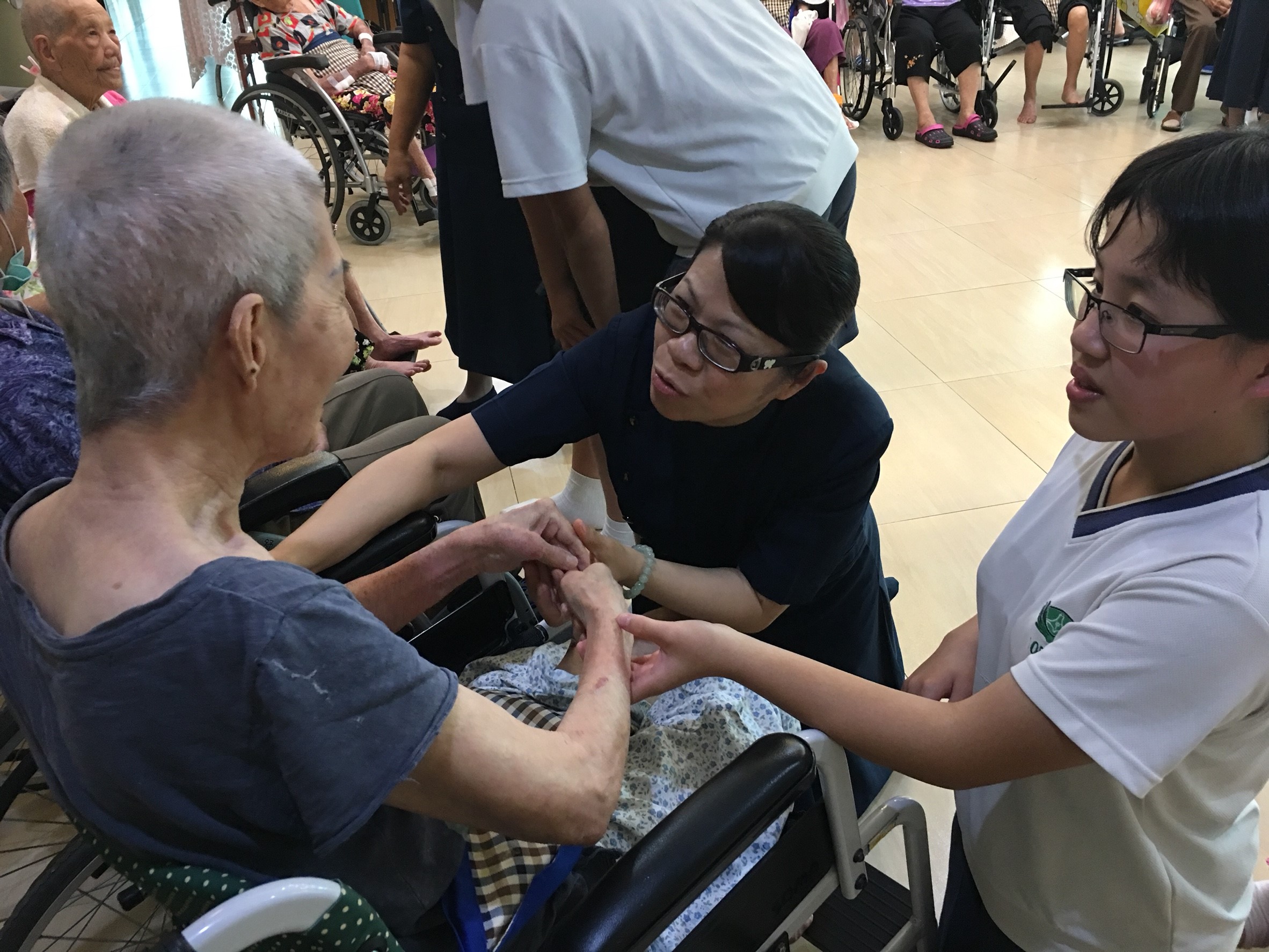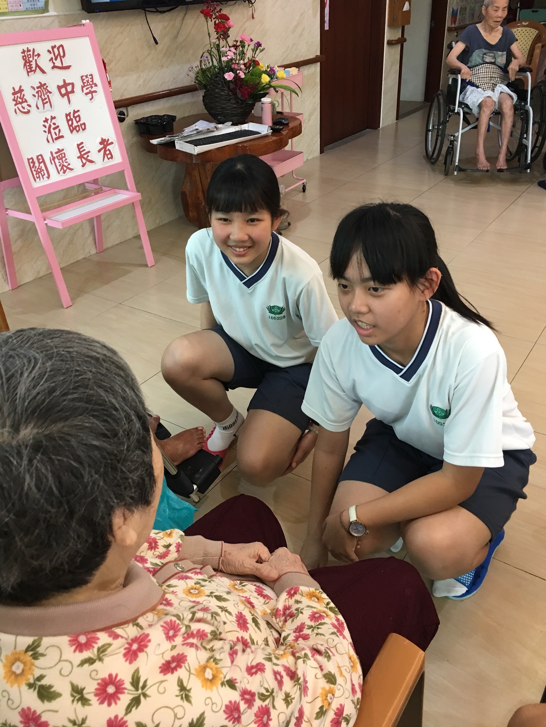 走出校門,要拜訪的安養院。就在學校旁,上下學都會經過,但從未來真正進來過。同學們的心情有點熟悉又感到陌生。慈大附中學生:「用心讓他們可以敞開心房,很自在跟我們聊天。」