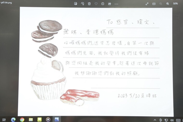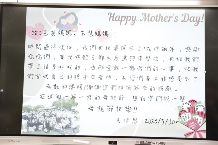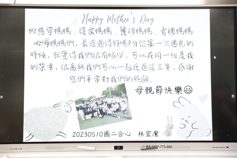 接著來孩子為懿德準備了驚喜, 班導宗興老師與媽媽意外地收到孩子們送的康乃馨, 還有一張張孩子精心製作的卡片,字字句句都好溫暖感動,懂得感恩的孩子最有福!感謝孩子陪伴我們過了一個難忘的母親節!
