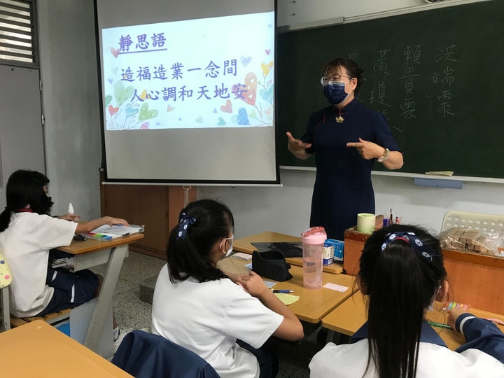 班聚一開始,懿德媽媽們先自我介紹,坐在台下的孩子們好捧場,給予熱烈的回饋,淑華媽媽隨即將本月的教案就序,螢幕上播放著「糧荒良方」,饑餓浪潮席捲大地,每48秒就有一人餓死,全球饑餓人數不斷地上升,8.21億的人不知道下一餐在那裡?再加上天災與戰亂,糧食飢荒問題,透過影片引導孩子們體會世間的苦,再帶著孩子們恭讀靜思語,「造福造業一念間,人心調和天地安」,願能將此植入孩子們的八識田中,造福、植福。