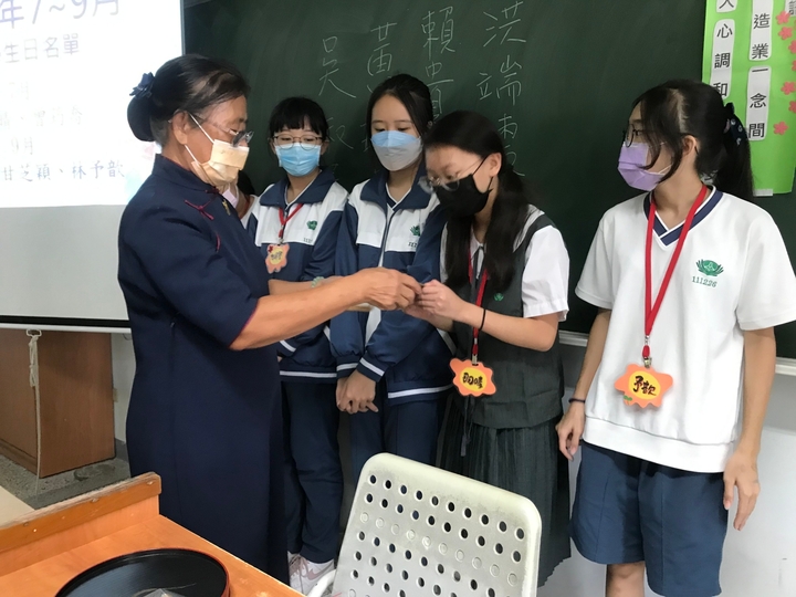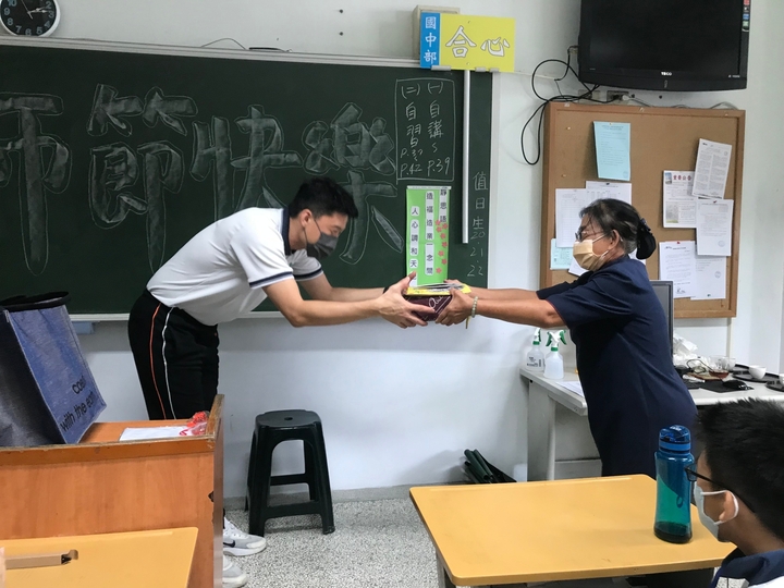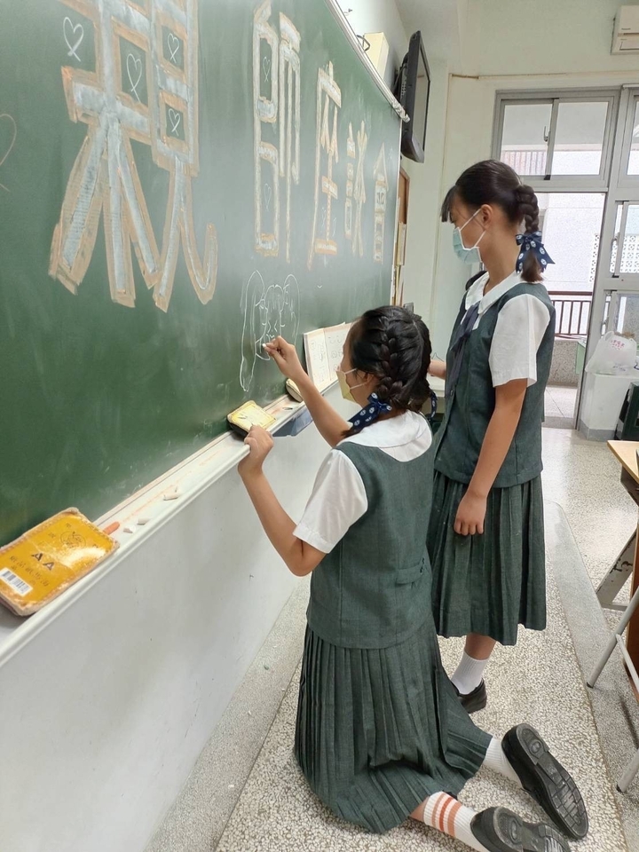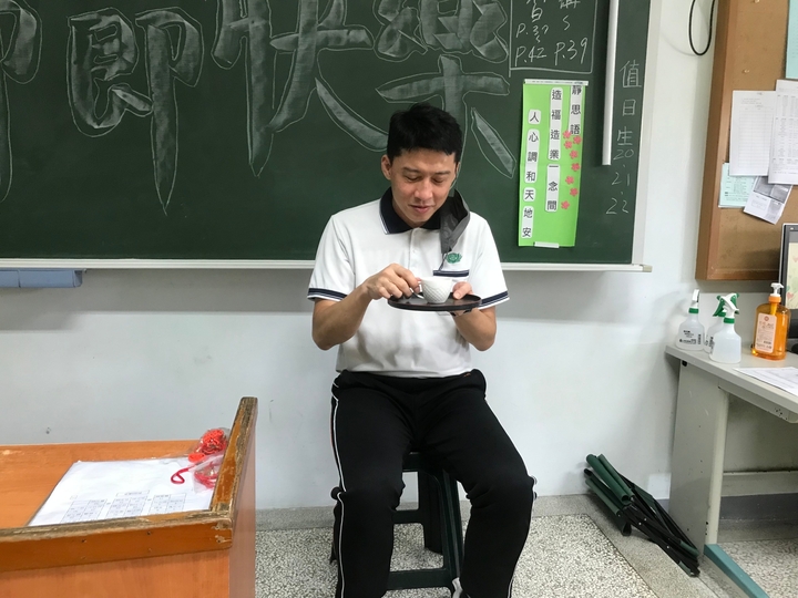 九月份的慈懿日,更重要的目的當然就是慶祝教師節的敬師活動,慈懿會及懿德爸媽們精心準備禮物,班上的端棗媽媽也親自為導師張德彥製作感恩卡片並送上。當「師恩深,一生深」音樂在教室響起,同學們陸續邀請班導師張德彥及科任田丞恩老師到台上就坐,由班長代表全班同學,單腳跪著親自為老師奉上一杯親自泡的熱茶,令人動容的畫面,隨後響起「老師~老師~謝謝你」的音樂,孩子們一起唱誦,教室瀰漫著熱鬧又溫馨的氛圍,平日為了教導孩子,看似木納嚴肅的老師,開心的笑著,好歡喜。