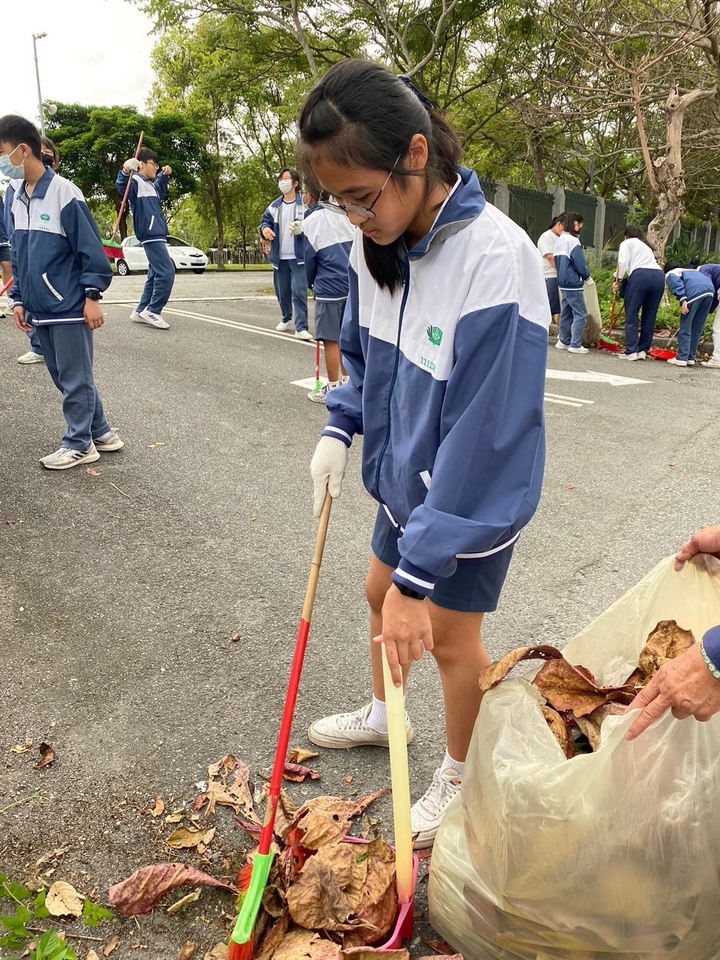 家聚過後,校長姐姐帶領著大家集結在操場,為慈中23手護洄瀾展開序幕,而後導師張德彥老師帶著大家前往濟慈路河堤區打掃,可愛的身影在草叢中、河堤邊認真的尋找垃圾,展現出「合心協力、長情大愛、共善前行」美善的畫面。