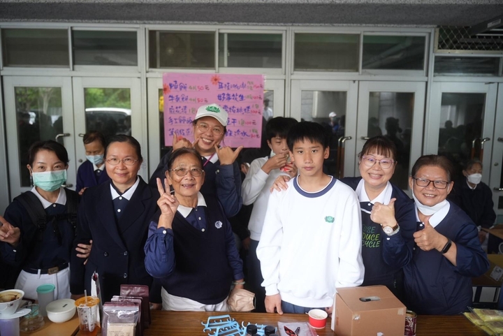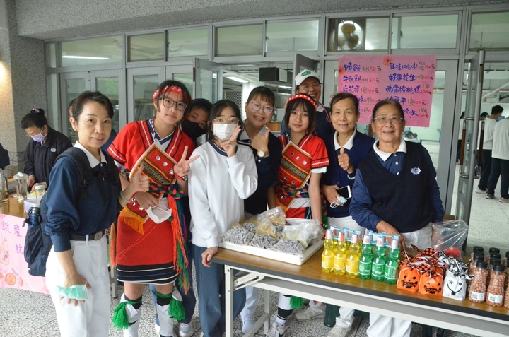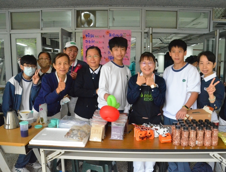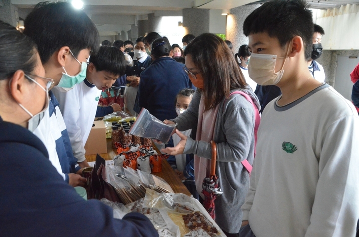 義賣會上第六攤桌上擺放著南部嚴選滷豆干、好事花生、彈珠汽水、核桃糕和咖啡包,都是懿德爸媽們為此次義賣準備的,貼心的孩子們一起到攤位幫忙,無疑是義賣會上最美的風景。