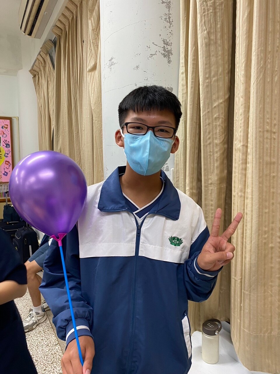 崴儀邀約導師、羽宸邀約振家主任走進教室,經過星光大道,孩子熱情拿著氣球和拉砲歡呼,並請老師入座,由李蔚、采綾、珞妘、京蔚四位孩子奉茶,再由爸爸媽媽獻上慈懿會和爸媽們精心準備禮物。