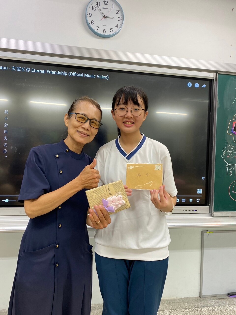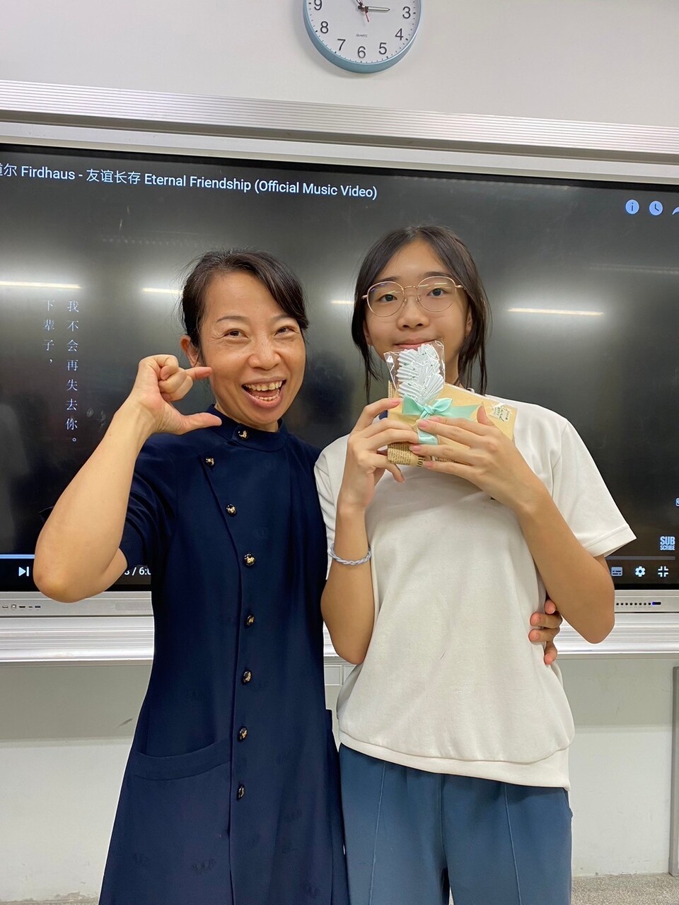 接著由孩子和爸媽們一同獻上手語帶動“聽我說謝謝你”,送給老師小心心,感謝老師一路的指引,因為有老師的愛,讓大家幸福滿溢,歡樂的氛圍下,老師開心的喊encore ,並為孩子拍照錄影,再一次呈現感謝後,孩子主動再為老師和爸媽們表演班上準備好的歌曲帶動,孩子音控一連串的歌單,沛媞帶著全班和樂的坐著合唱,也分享暑期國外交流的點滴⋯從一年級到三年級,看著孩子的變化,這一幕自在的相處,是老師用心的成果,無限感恩~