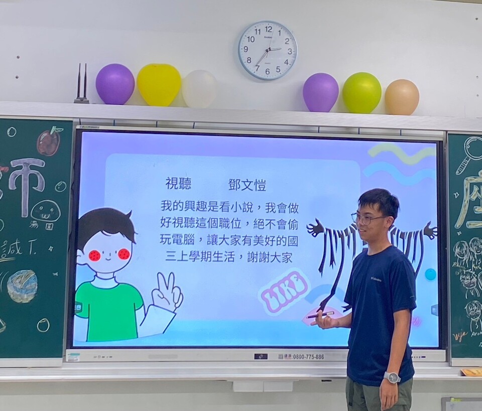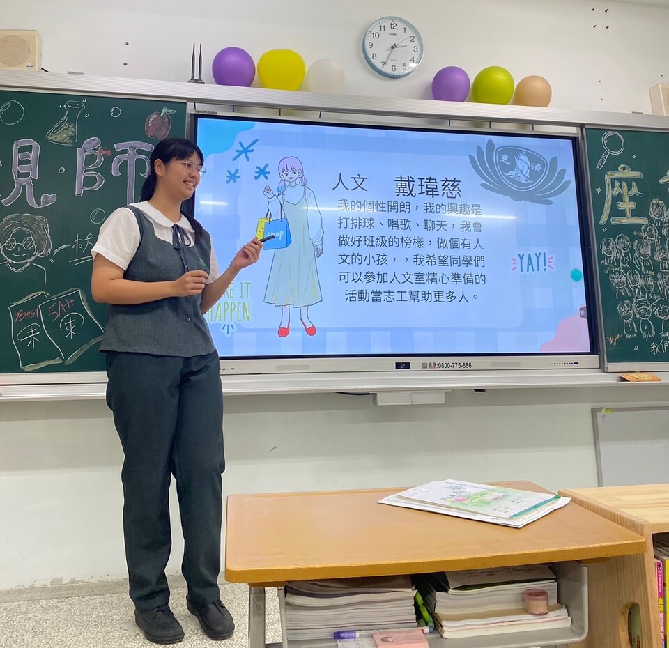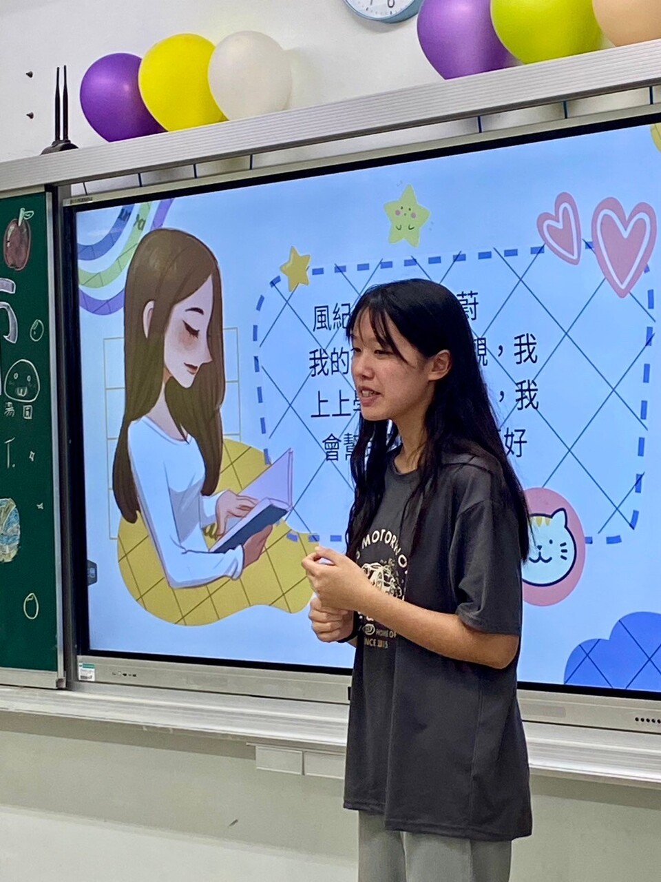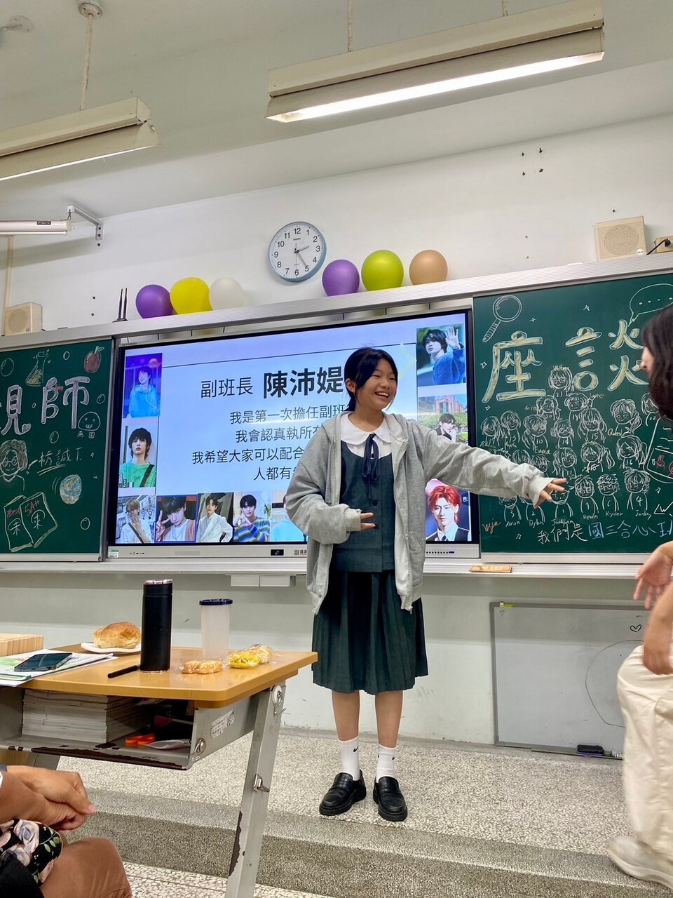 而親師日當天剛好是采綾的媽媽生日,采綾在班級幹部上台介紹時,大方的請在座的爸爸媽媽、導師和孩子一起獻上生日快樂歌給媽媽,相信采綾媽媽度過一個難忘的生日。