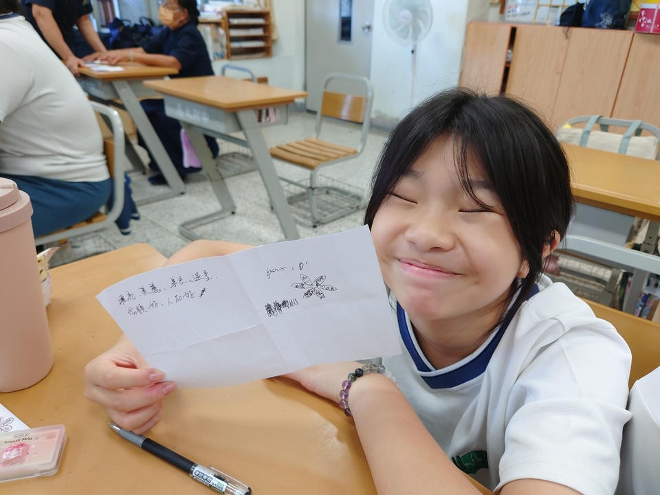 懂得欣賞美麗的事物,我們也想做一個受歡迎的人氣王。單腳天使徐又立,在她的身上看到了知命、立命,不為逆境而氣餒,她認真努力又有自信,樂觀開朗更是一位人氣王。要自愛才會人見人愛,自愛是報恩,付出是感恩。要如何做一個開朗自信又有好人緣的人呢?貴雲媽媽發下紙張,要孩子們看看又立,想想自己,寫下「我也可以是人氣王」的條件…