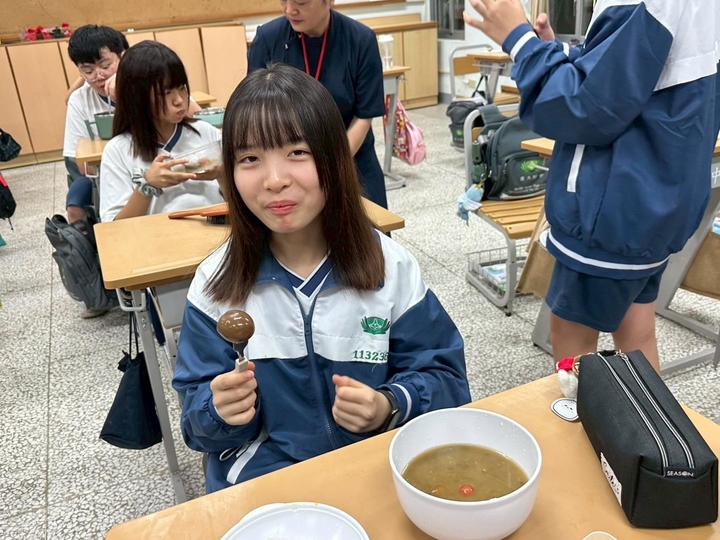 由爸媽親手合力製作的麻辣魯蛋,是孩子們上個月小小心願期待的佳餚,還有清涼綠豆湯配上軟Q的湯圓,讓酷熱的天氣稍微消暑,大家不亦樂乎品嘗著點心。