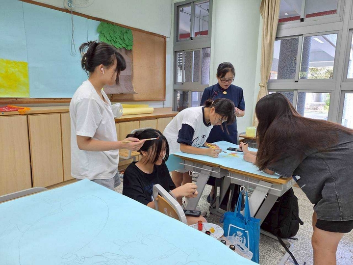 老師的用心,這次的懿德日我們看到了,孩子活潑但不失禮儀,同學們之間互相支援,因為教室內的壁畫由孩子們自己設計,大家真的互相配合,圖案是由鈺騏描畫,大家共同調盤染色。