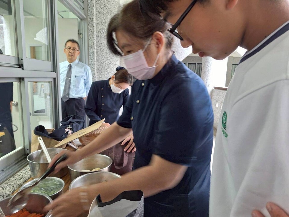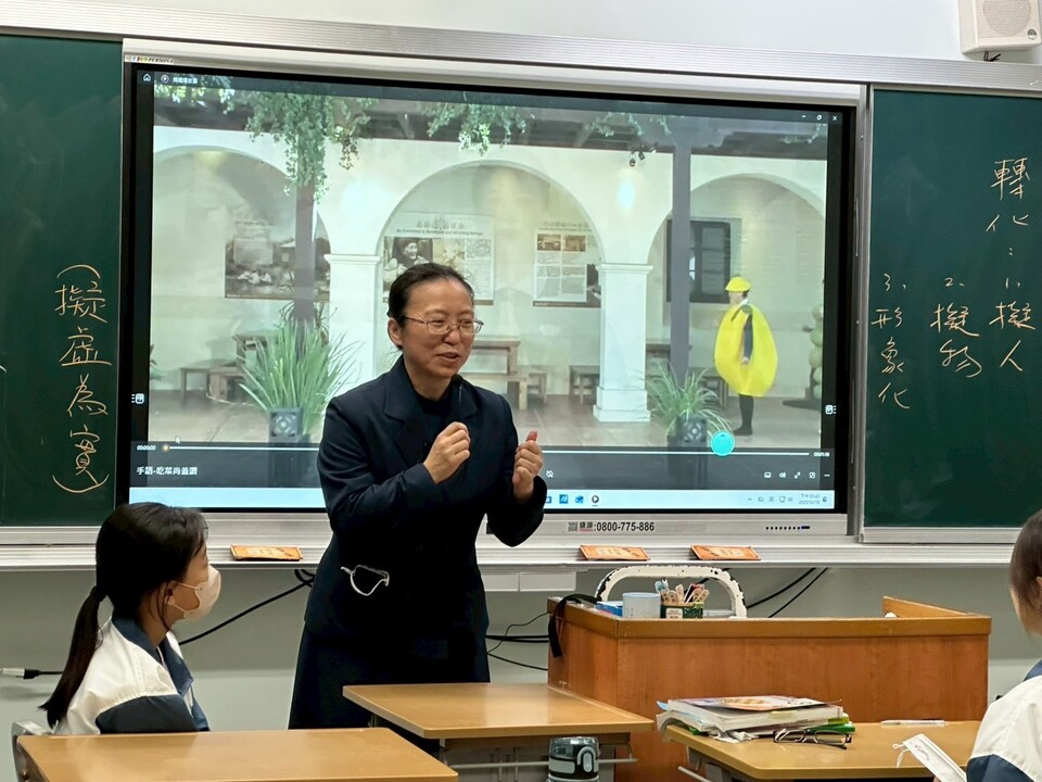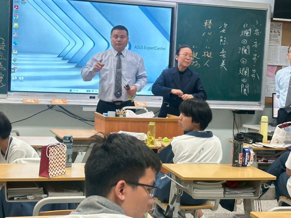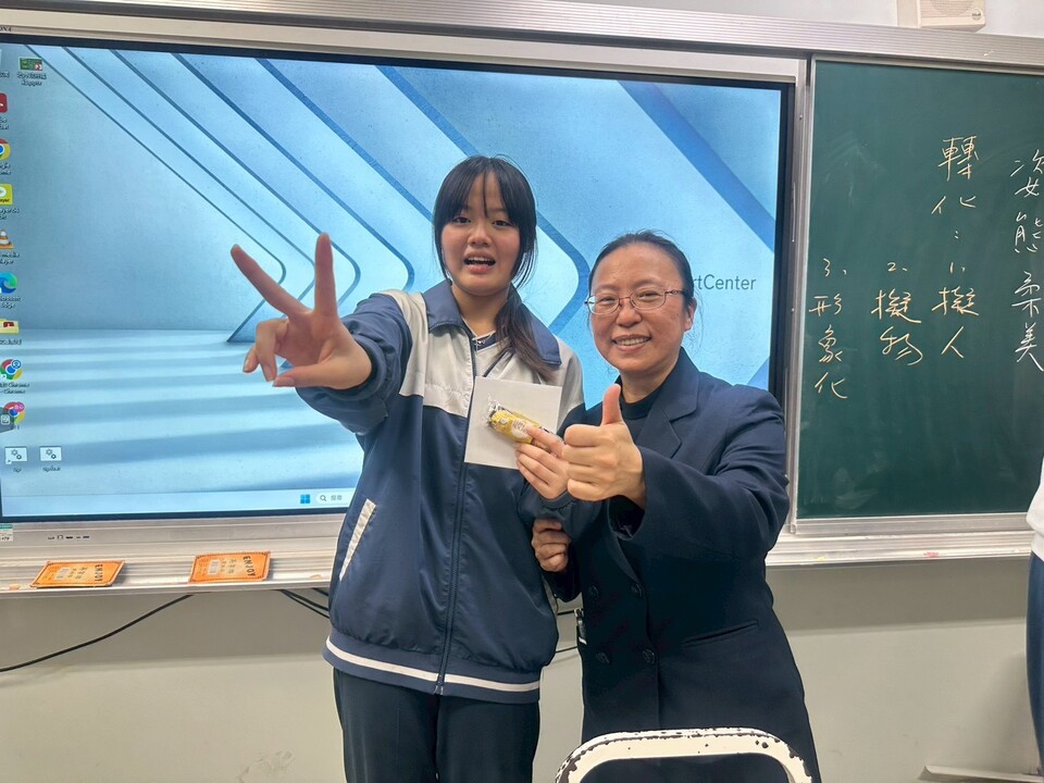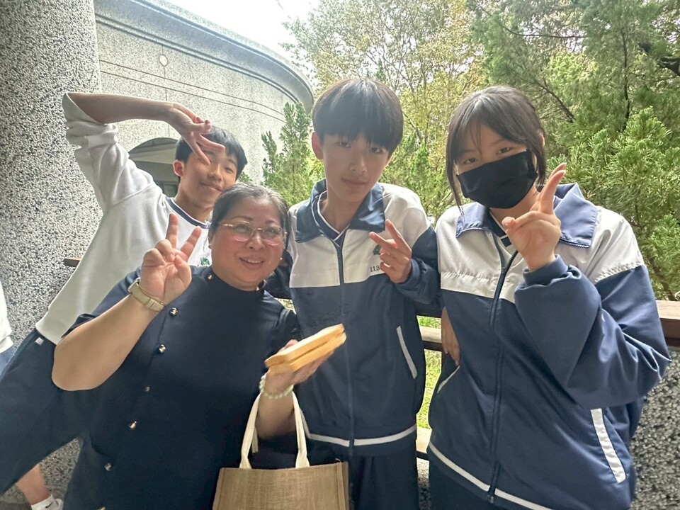 逸貞校長講述感飢12、送愛國際的活動成果、以及同學們榮獲花蓮縣及全國各項比賽好成績,其中班上同學葉煥胤花蓮縣羽球國中男子組雙打第三名,潘品樂嗩吶國中B組全國第一名。
