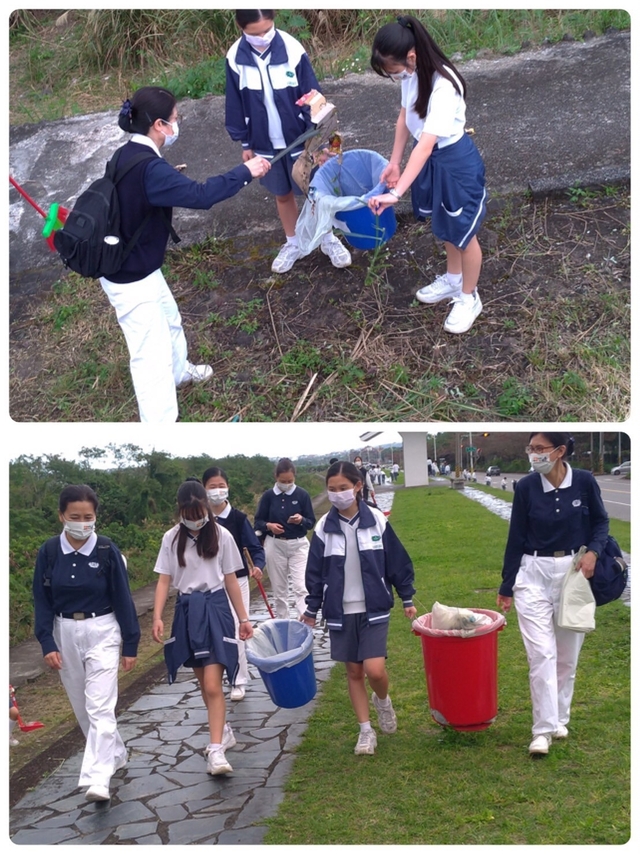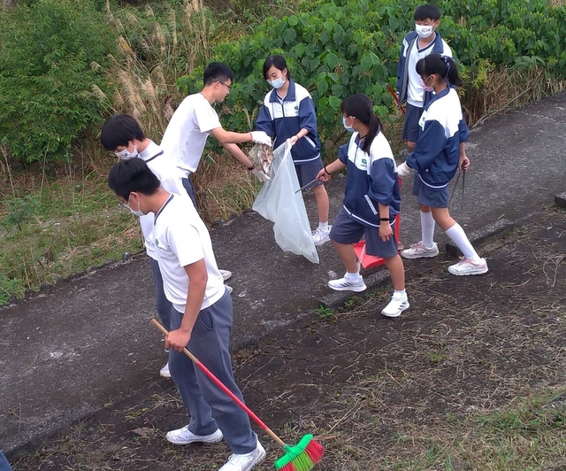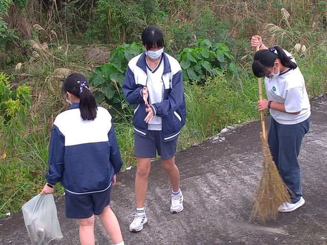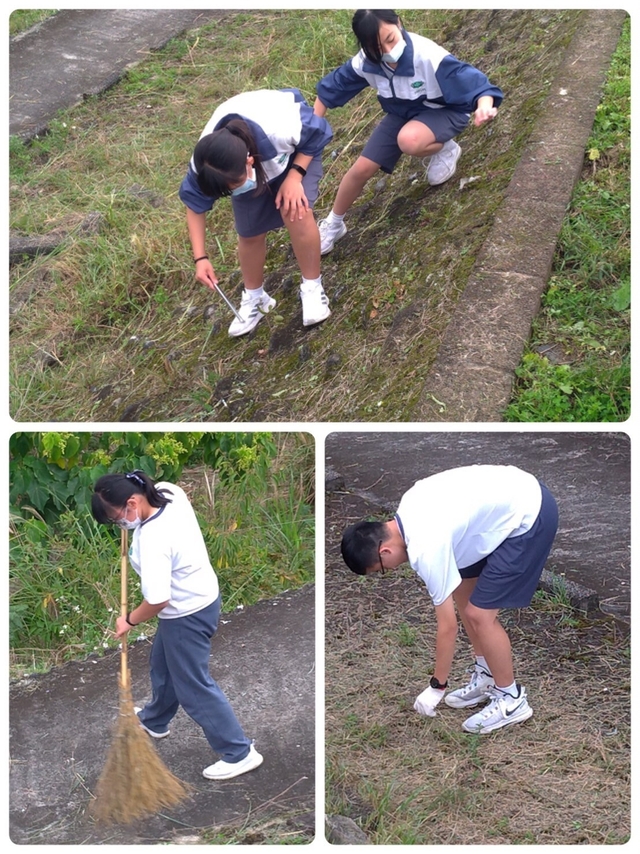 圖五~圖十:守護愛洄瀾社區服務活動,國二包容班打掃草叢丶落葉丶撿拾煙蒂丶垃圾,用行動維護社區環境,愛護地球。