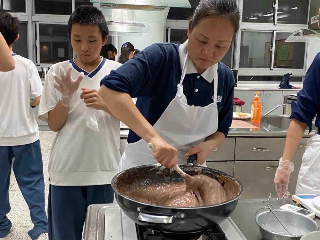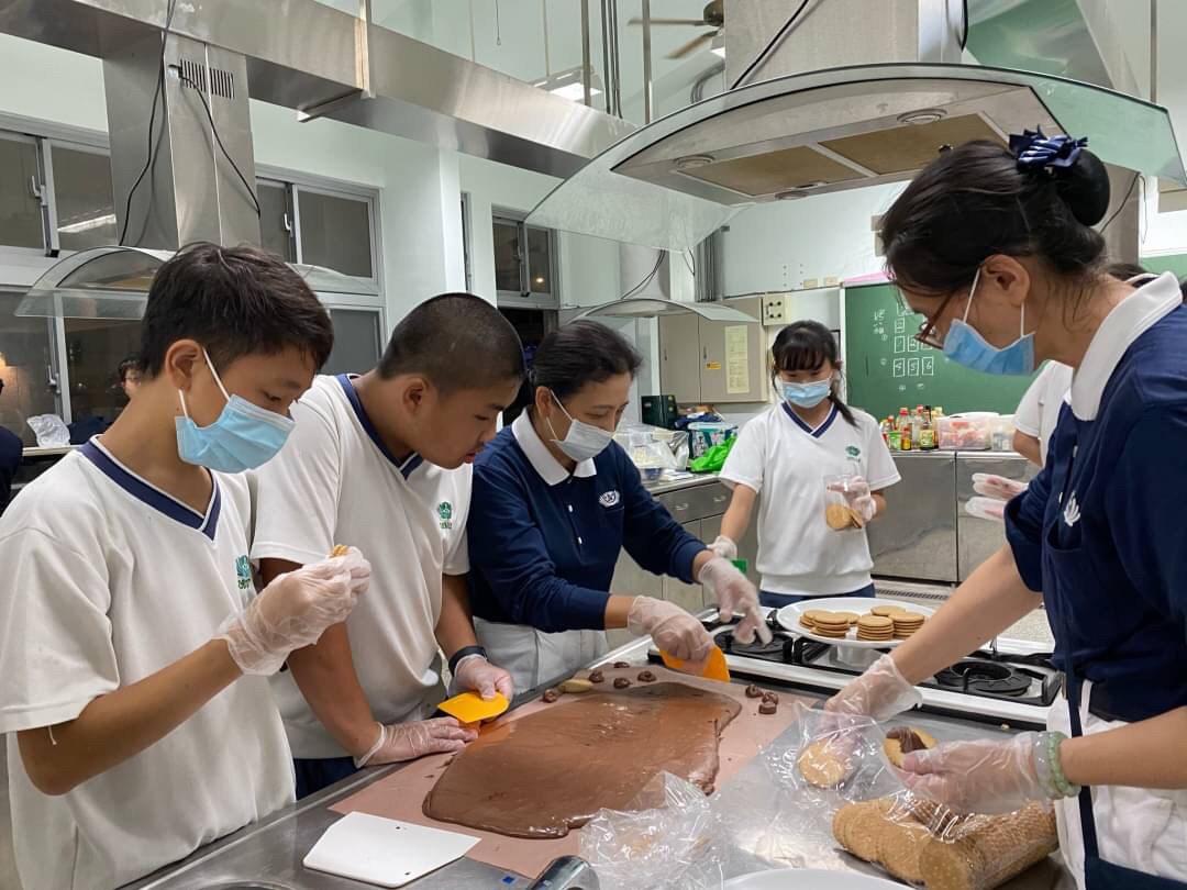 圖七~八:慧玲與靜如及錦雀媽三位媽媽為了義賣在烹飪教室忙著做手工餅乾,同學們掃街回來沒忘記趕過來幫忙。