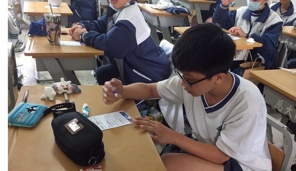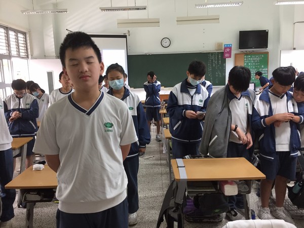 圖四~圖五:同學們閉起眼睛進行「心有所數」的遊戲,讓孩子藉由遊戲中去想想自己是否有把握分秒善用時間。
