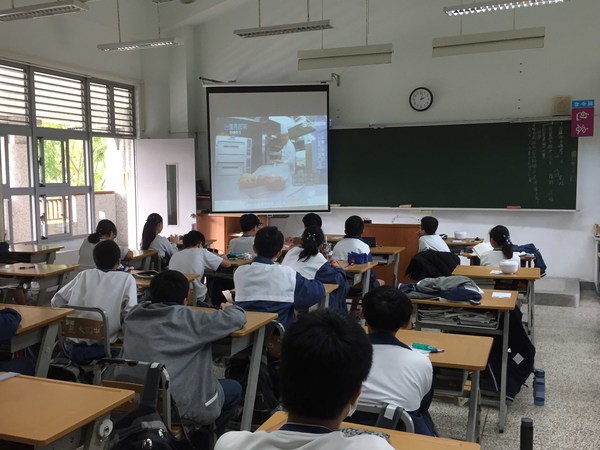 圖六~圖八:孩子專注地觀賞世界麵包冠軍王鵬傑師傅的影片。之後請同學們分享心得及填寫學習單,回顧今年自己做得最棒的事,也寫下鼓勵自己的話。