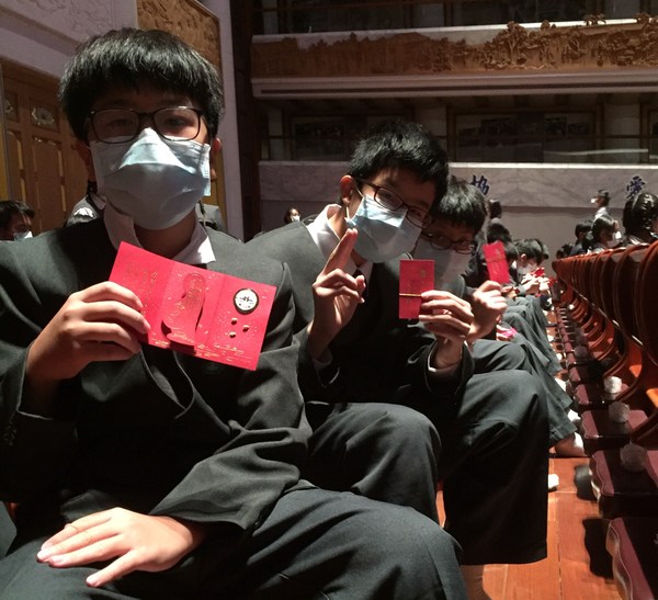 圖十三:孩子們很開心領福慧紅包,領受師公上人和常住師父們的祝福。