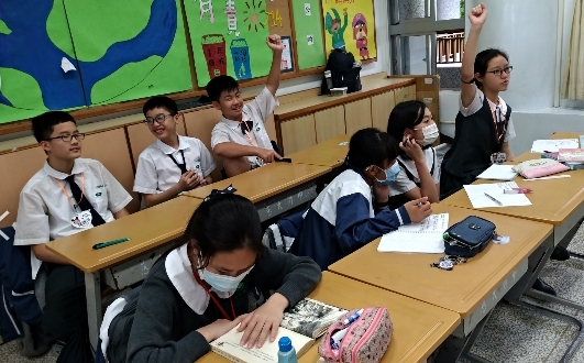 圖一: 配合蔬食無痕,準備猜猜看遊戲,孩子們踴躍舉手搶答(之一)