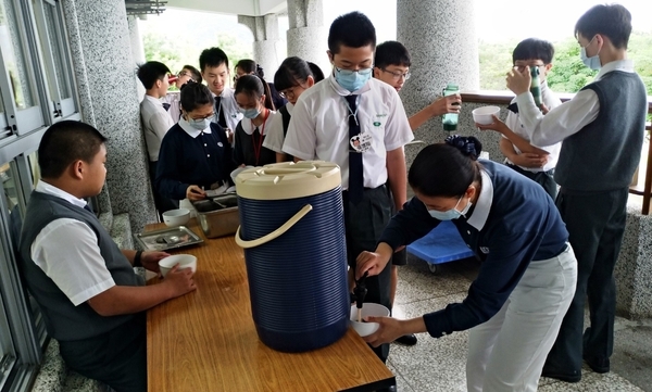 圖三: 孩子們有秩序地排隊,準備享用珍珠奶茶