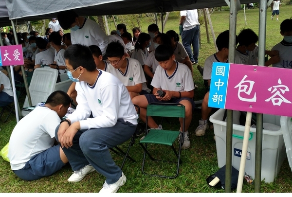 圖八: 大家在爸爸媽媽搭的帳棚下休息,靜心淨心後回精舍。