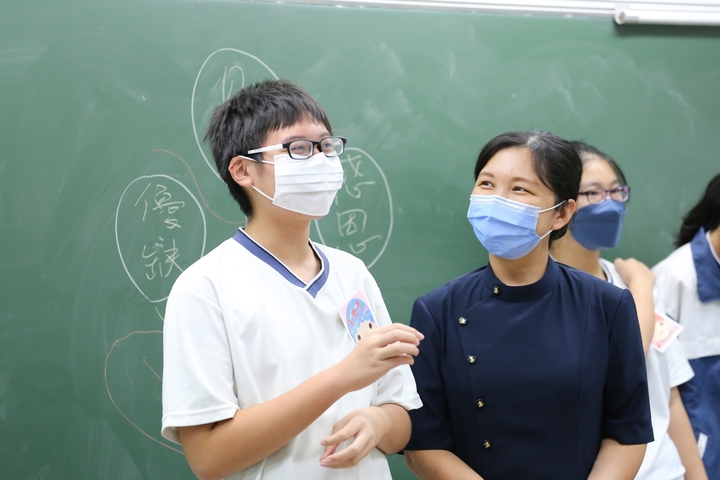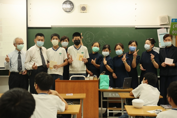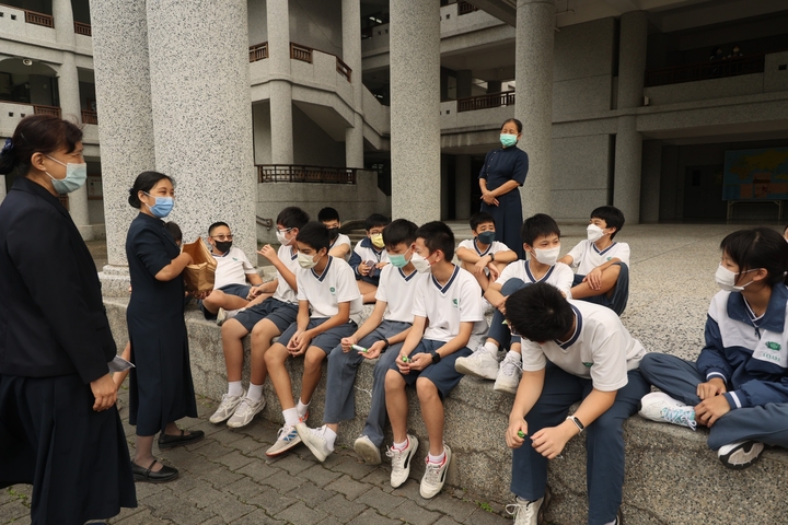 在中午用餐時,與國二包容秉忠老師一起用餐,爸爸媽媽都很急切的問老師孩子們的近況,生活起居及同學間的互動學習狀況。因為爸爸媽媽在疫情期間與孩子間的接觸時間實在有限,因此老師的訊息可以幫忙爸爸媽媽儘快進入狀況。