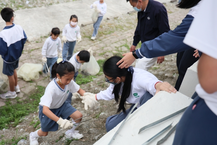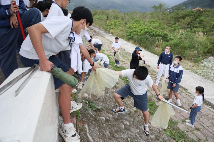 昕儀媽也配合孩子抽靜思語字條,讓孩子分享可以用什麼方法幫助受災的難民。此次慈懿日為了慈中校慶暨運動會,一如往常舉辦了守護洄瀾的打掃社區服務,包容班的孩子們在秉忠老師帶領下,到學校周圍的濟慈路堤防邊打掃環境邊撿拾垃圾。正雄爸細心的在馬路旁協助孩子注意交通安全,而且在堤防上也遇到慈小的孩子們一起來幫忙打掃,包容班的孩子也幫忙在邊坡協助慈小孩子爬上堤防完成此次任務。