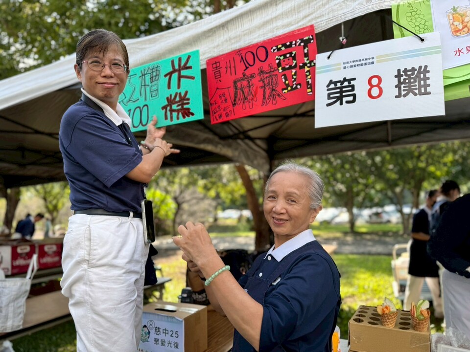 一大早孩子們就精神抖擻的進場,準備一連串的比賽,我們包容班很棒,得到了創意進場第三名的榮譽。懿德爸媽也在攤位忙著義賣,義賣像條繩子,串起大家的愛,我們的麻辣豆乾是朱枝媽的媳婦親手做的家鄉味貴州麻辣豆乾,真材實料好味道,還有嘉鴻媽八十幾歲的媽媽手作的限量版紅糟米糕,一下子就銷售一空。若岑媽買了二大袋辣豆乾分享給高二和高三的孩子,量多金額大,朱枝媽說「會不會太多」,若岑媽拿起多張仟元鈔定格在大家面前說「捐、愛」那是一份篤定,一份愛,一份給光復鄉民的力量,是實相並不是新台幣可衡量的表相,在收攤的前一刻滿滿的感動在心中。