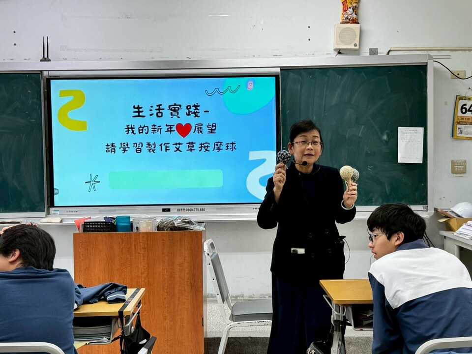 淑貞媽創意巧思,手寫愛心小卡上的祝褔,包進按摩球中,這樣每一次按摩都充滿祝福的正能量。