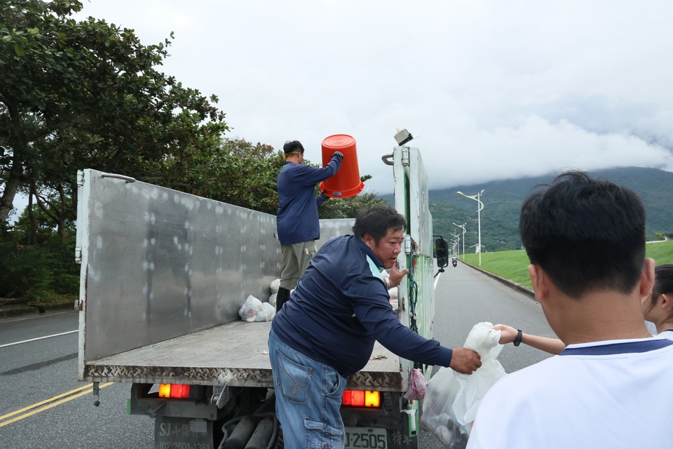 走出校園,包容班的孩子們也展現同學的情誼,大家互相協助撿拾煙蒂、紙屑等路旁的垃圾,慈懿爸媽則在一旁守護孩子們的交通安全,春芳媽貼心地幫被蚊蟲叮咬的孩子塗抹瀅華露,包容班的孩子們在校園外展現青春活潑的一面,看到清潔隊員也在路上協助將孩子清理的垃圾集中回收,避免放置路旁造成困擾,但也同心協力完成這次的手護洄瀾的任務。