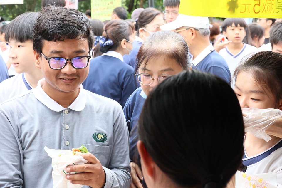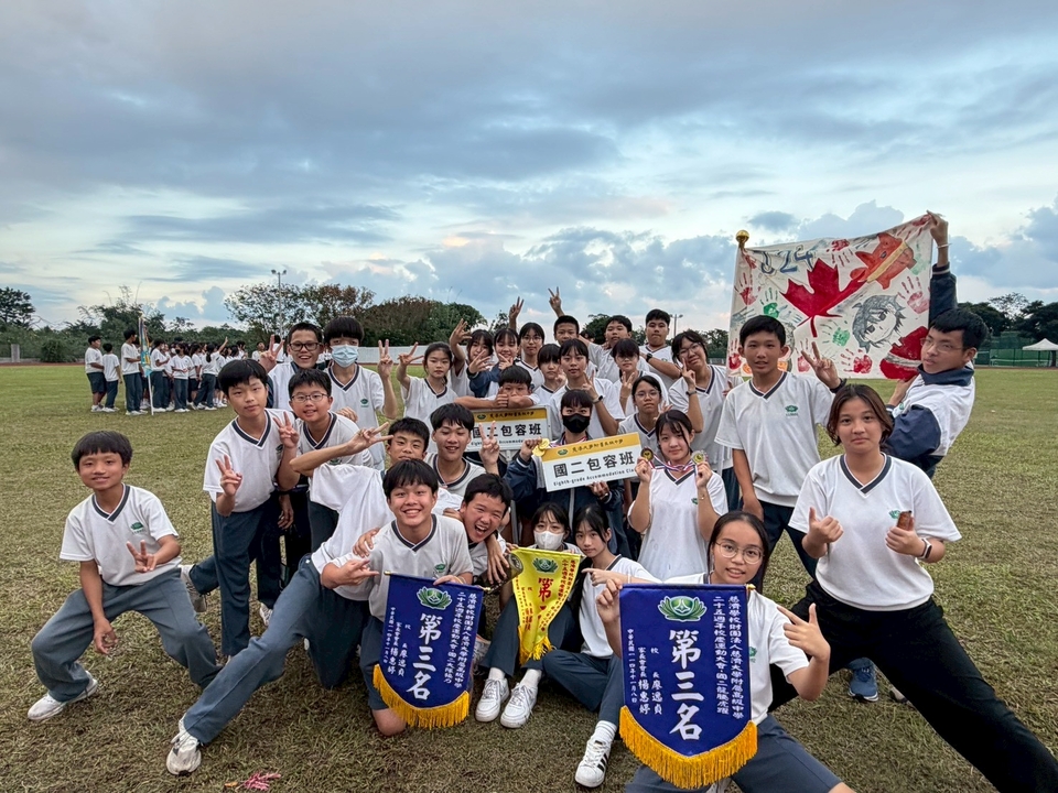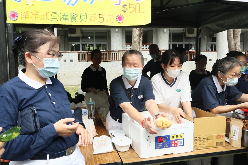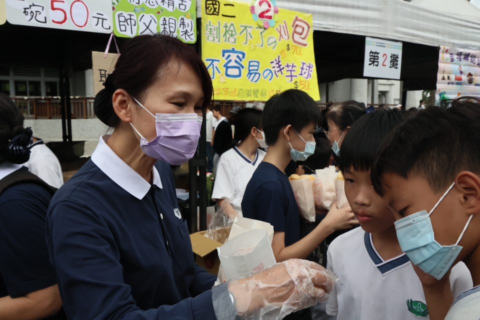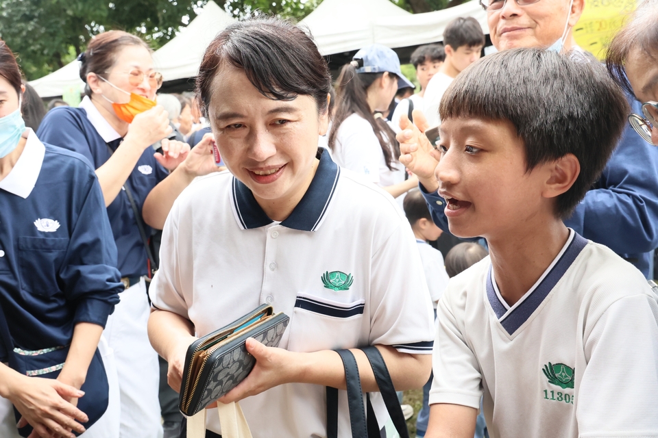 11月初秋天的陽光輕灑在包容班的每個孩子臉上,大家都在譯云老師帶領下歡喜的進場,而另一邊慈懿爸媽一早就分工合作開始在烹飪教室及園遊會會場準備及佈置。陳慧媽、玉如媽及寶媛媽在烹飪教室準備美味的刈包,永瑞爸、春芳媽、千惠媽及綉滿媽則在攤位上包裝洋芋球,秋蘭媽則負責收款及找零。包容班的孩子也知道在爸爸媽媽園遊會義賣的目的是要幫助光復受災災民募款,所以在沒有參加運動會活動的時間也來幫忙包裝、運送食品及販賣,並向校長或與會的家長來賓或其他同學說明義賣內容項目。甚至有外賓來訪時,包容班的孩子也會利用英文與外賓說明食物的內容,讓來賓有賓至如歸的感覺。包容班的孩子也在運動場上展現團隊活動的活力,運動會不論是參與比賽的或是旁邊加油的都拼盡全力,在團體獎項上趣味競賽-齊心協力第二名,趣味競賽-龍騰虎躍第三名,大隊接力-國二第三名。在個人獎項跳遠國二女生第一名:霓渟(破大會紀錄),鉛球國二女生第一名:霓渟,國二女生100公尺第三名:敏希都獲得大家的讚嘆。而且園遊會的募款有數位師姊在事先募集大家的愛心,也達成目標。一場活動下來大家都很幸福,但也充滿了合作無間合和互協的默契與歡喜。