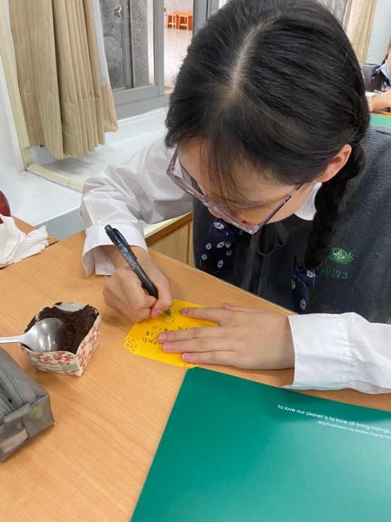 4、為了要給老師做一本手工書留紀念,請每個同學寫一張小卡片送給老師,同學們都很認真並工整的寫出對老師的感恩。