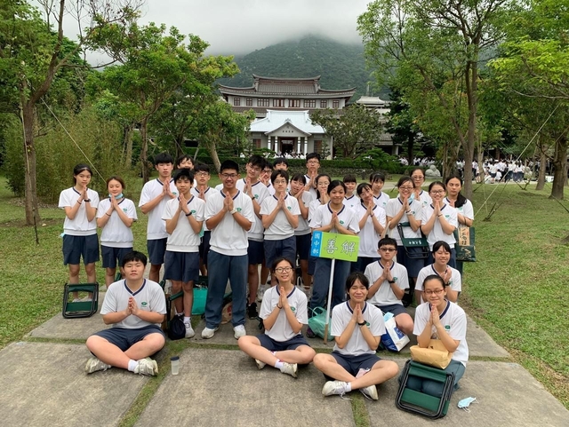 2.懿德爸爸媽媽沿途引導、交通維護、啦啦隊加油。7點不到孩子們陸續抵達,稍作休息換衣服、喝水,用餐,9點離開精舍回學校,在精舍前留影紀念。