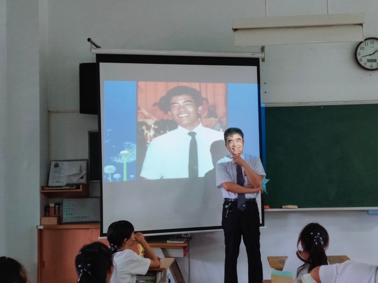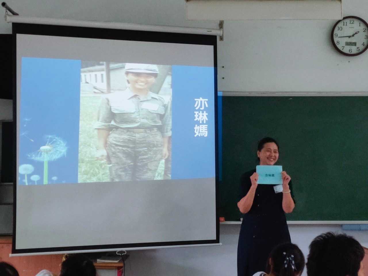 今天和孩子們見面開場時,「秀出」每位爸爸、媽媽年輕時代的相片讓孩子們看圖猜一猜是那位爸爸或媽媽~孩子們都知道班上有:九位媽媽二位爸爸,輕易就猜到了。