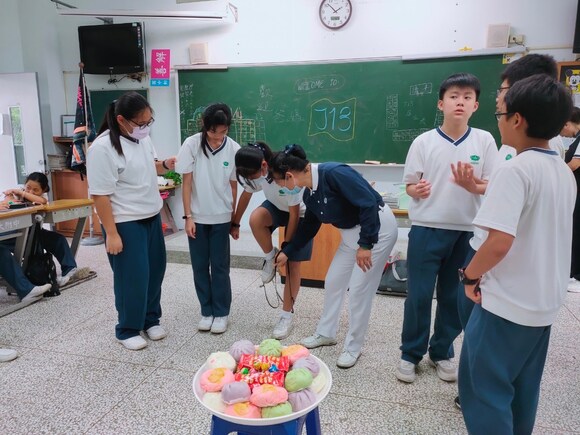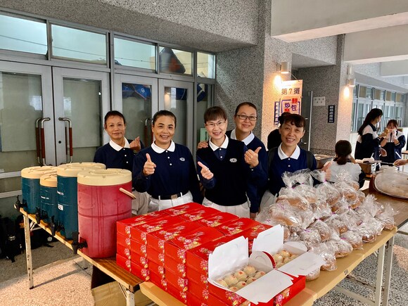 此次「慈善義賣」攤位是由三個班級共同經營;各班準備不同的食物,共同叫賣!