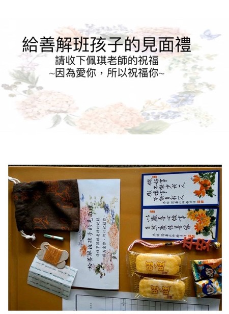 今天老師帶著滿滿的祝福,準備以下六項的見面禮,祝福我的孩子們,在慈中的三年可以快樂成長,認真學習。