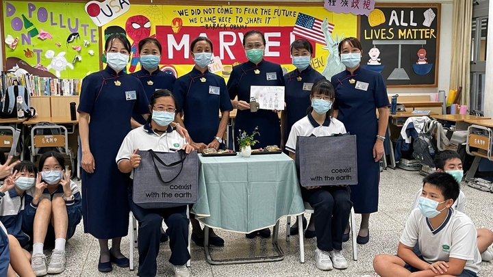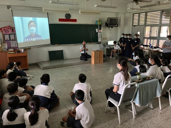 「有獎徵答」答案就在影片裡,孩子們專注觀賞影片,並踴躍舉手搶答,加上孝信爸爸帶來「歐咪呀給」助興,反應熱烈,孩子也不吝分享感想,看這群孩子心寬念純,這就是慈濟人文孕育的學子,令人欣慰。