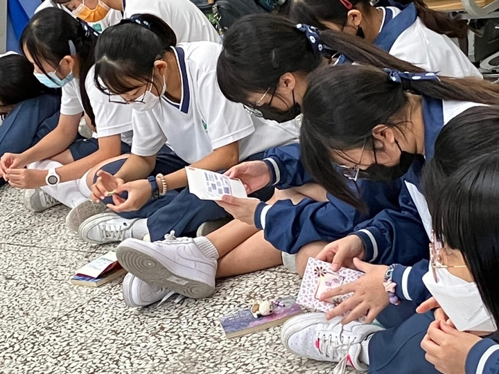 每張生日卡片都是純手工製作、獨一無二喔,麗柚媽媽準備烏龜小吊飾及檀施書籍與孩子分享,每一本不同,可以交換閱讀;慈懿會致贈每位孩子一支環保筆,雅惠媽媽也準備大愛環保書籤(感恩貼)結緣。卡片及影片是玫君媽媽製作,海報及小盆栽是奕丞媽媽製作,點心雅純訂購。良能,都是不可或缺的,成就一切好因緣,感恩!