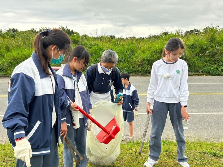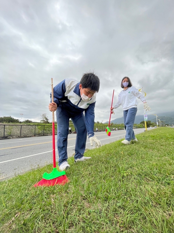 突然,有位孩子關心的問起那位「感恩、尊重、愛」的爸爸怎麼沒來,大家會心一笑地告訴孩子:「孝信爸爸和麗柚媽媽在精舍喔!」維揚哥哥用問答及影片方式與孩子互動,讓同學更清楚馳援土敘義賣園遊會的意義。接著全校在操場集合,用感恩的心慶祝校慶。全校「守護洄瀾」兵分多路打掃花蓮街道,用行動愛護花蓮愛護大地。