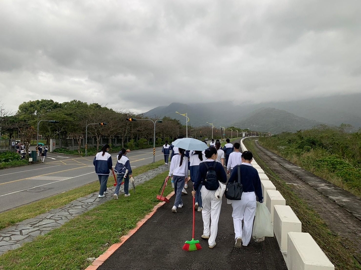 一到慈中毛毛細雨迎接著慈懿浩蕩長的隊伍,一路走向演藝廳。