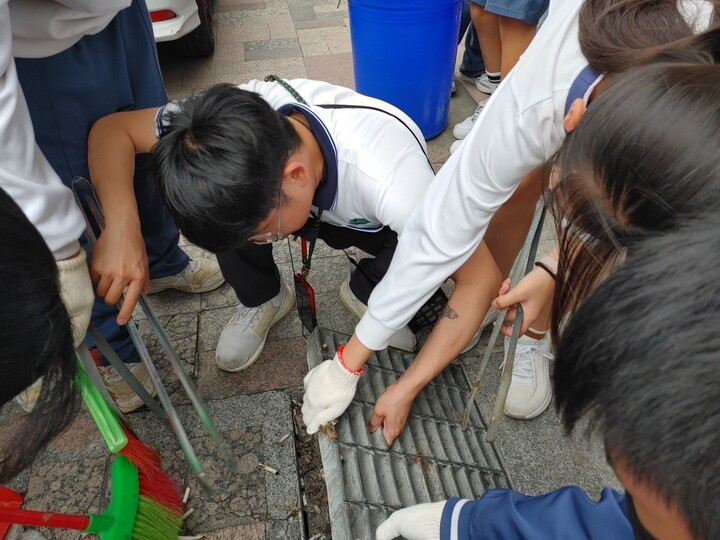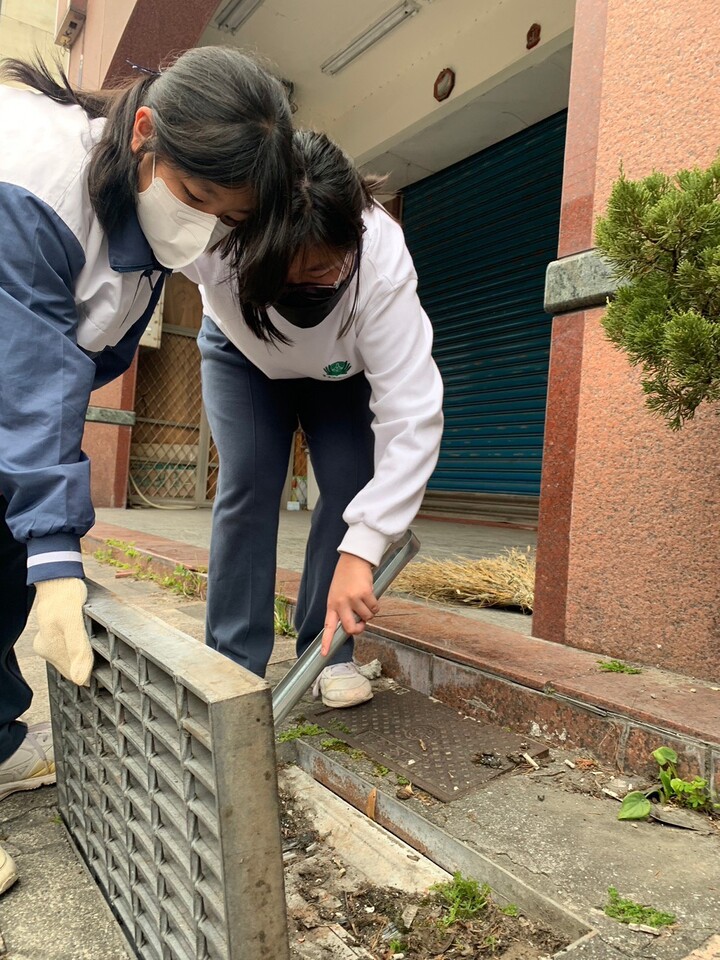天啊!走了好遠一趟路總於到達,第一站殲滅全家便利商店前的排水溝蓋裡的煙蒂;老師奮力的抬起排水溝蓋,孩子們趕快一擁而上有的用夾子、有的用掃把快速的把裡面滿滿的煙蒂掃乾淨。繼續往下走孩子們開始抓好訣竅,就是先以排水溝蓋裡的垃圾來處理,戰績豐厚,一下子垃圾袋就裝的滿滿的!住家的主人們還對孩子們說謝謝,謝謝幫他們清潔,陪伴的媽媽們也趕緊回覆說感恩給予孩子服務的機會!