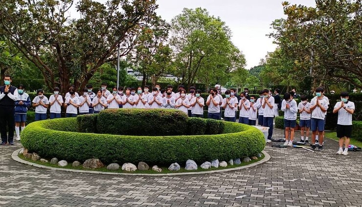 休息充分後到了回程的時候,孩子們列隊排在小靜思的花圃前向佛陀告假表示要回程了。因為疫情,去年孩子入學時的新生訓練營沒有辦法到精舍巡禮,今天是他們第一次會精舍,令人訝異的是,果然是慈濟的孩子,原本吵雜聲不斷開始排隊準備列隊告假時,孩子們突然出奇的安靜,懿德媽媽們連連稱讚熊孩子經過半學期的薰陶後成為了有人文的乖孩子們👍
