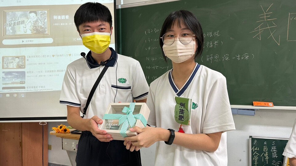 最後由懿德爸爸們代表慈懿會送上謝師禮,也由孩子送上寫滿祝福的卡片收集箱送給老師。