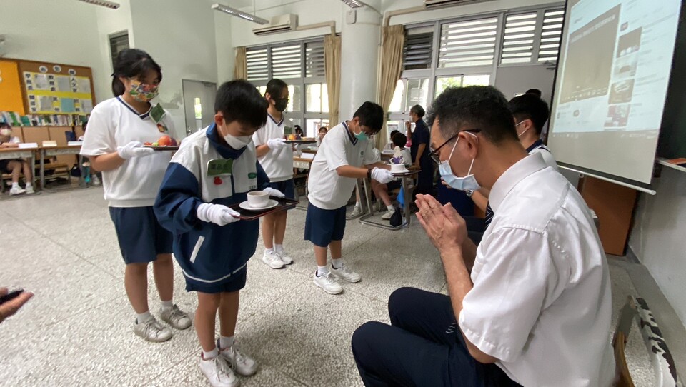同時因為接近9/28教師節,學校和慈懿會藉此機會舉辦敬師謝師活動,活動中的奉茶、奉點心儀式,讓孩子充分表達出心中對老師的尊敬和一份感恩的心,孩子們也獻上一首~師恩深一生深的手語帶動唱,三不五時愛要及時~