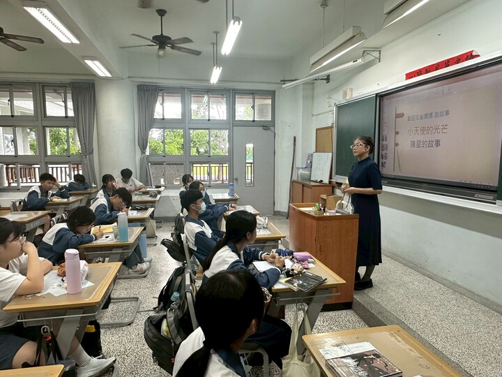 隨後由文雀媽帶來生命教育的故事分享「小天使的光芒—陳星的故事」,講述一位罹患罕見疾病的小朋友陳星的生命歷程。透過她的勇敢與堅強,文雀媽以平實卻深刻的語調,娓娓道來陳星與家人如何面對困境、如何從苦難中找到愛與希望。陳星雖然身體受限,卻從不自怨自艾,反而用微笑和樂觀鼓舞他人。這樣的精神深深觸動了在場每一位同學。文雀媽鼓勵同學們在人生遇到困境時,要學習正面思考與勇敢面對。教室裡靜默而專注,故事深深感動了在場的每一位同學,收穫了一場心靈的洗禮。