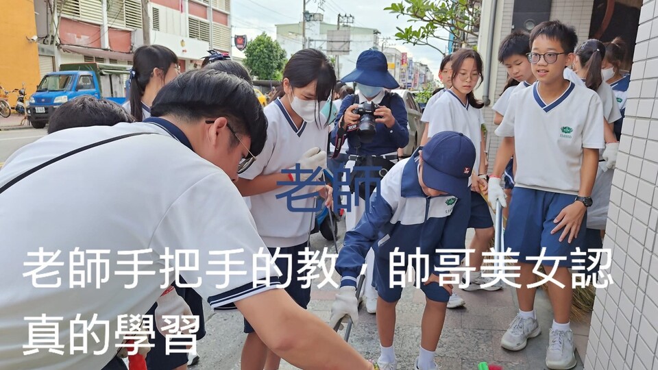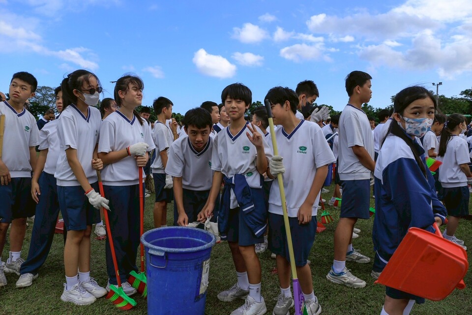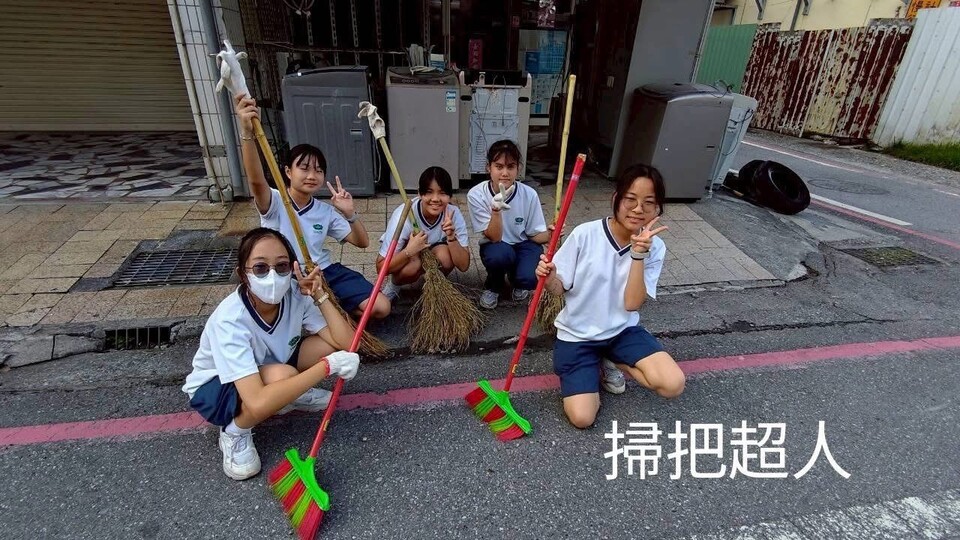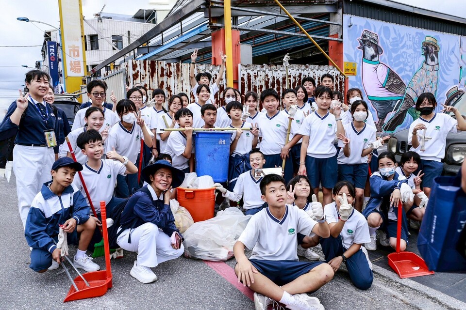 最後來到一處空地前,老師集合了大家,舉著打掃用具與勞動的成果垃圾們拍了張大合照,畫下今天美好的句點。