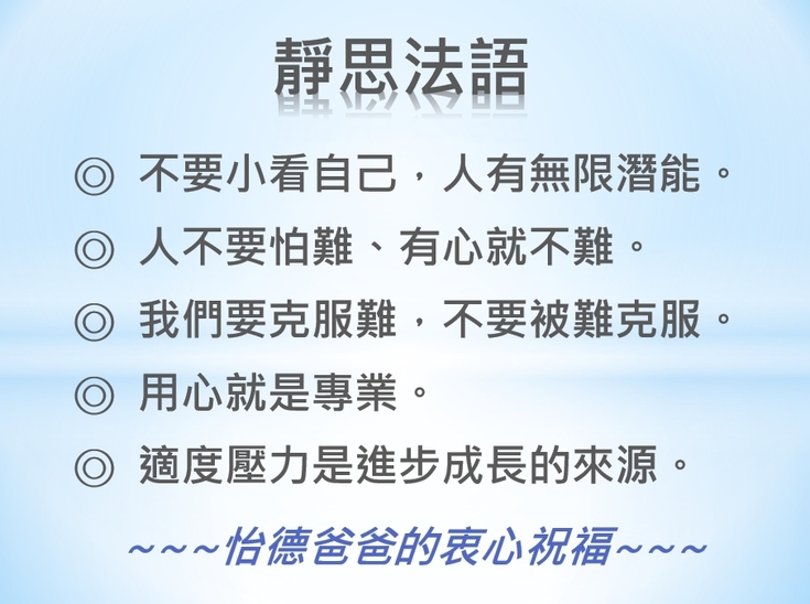 - 不要小看自己、人有無限潛能。