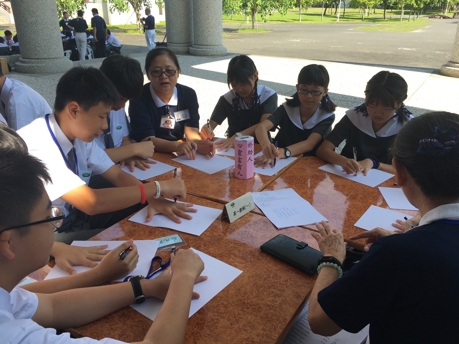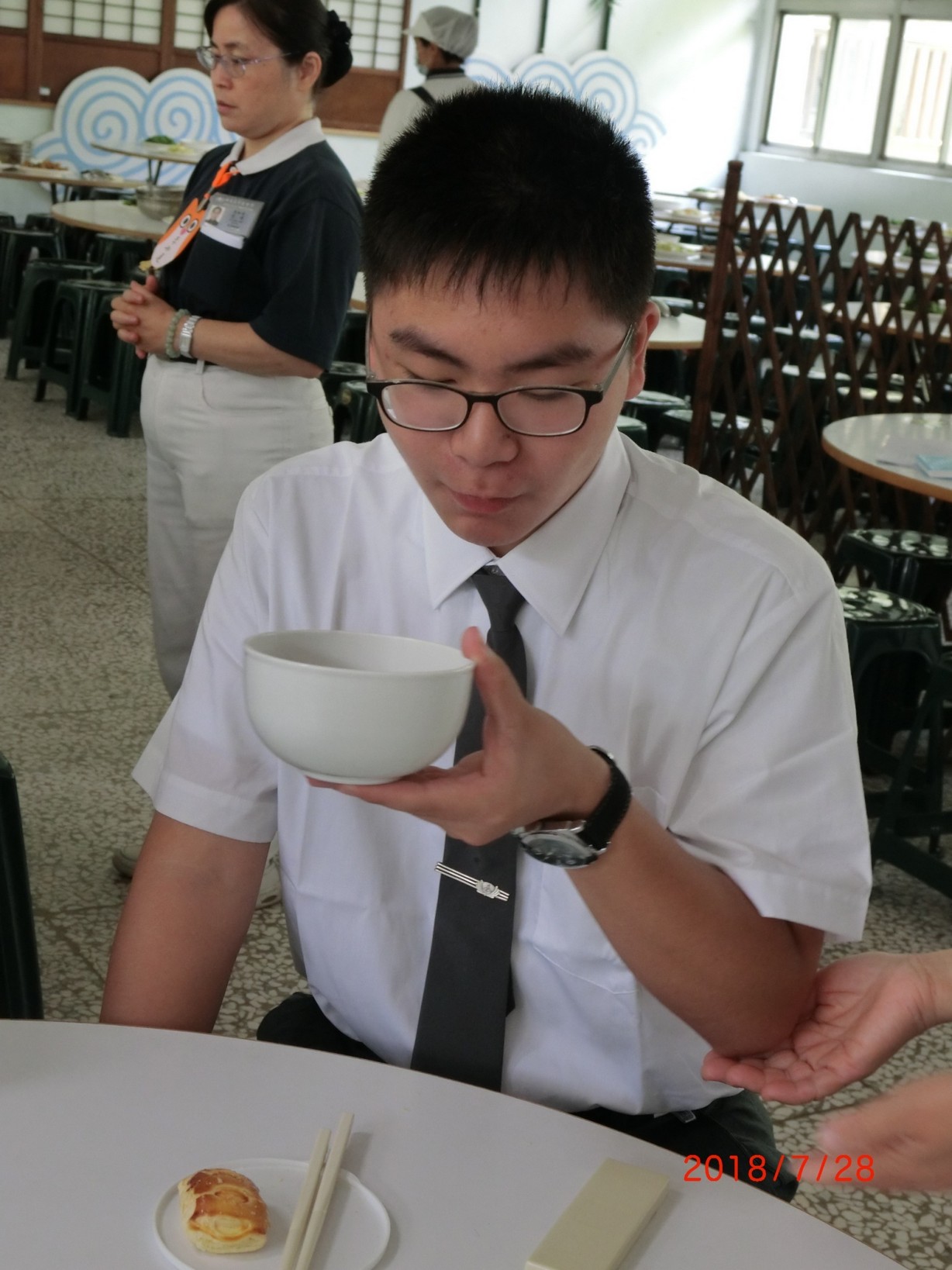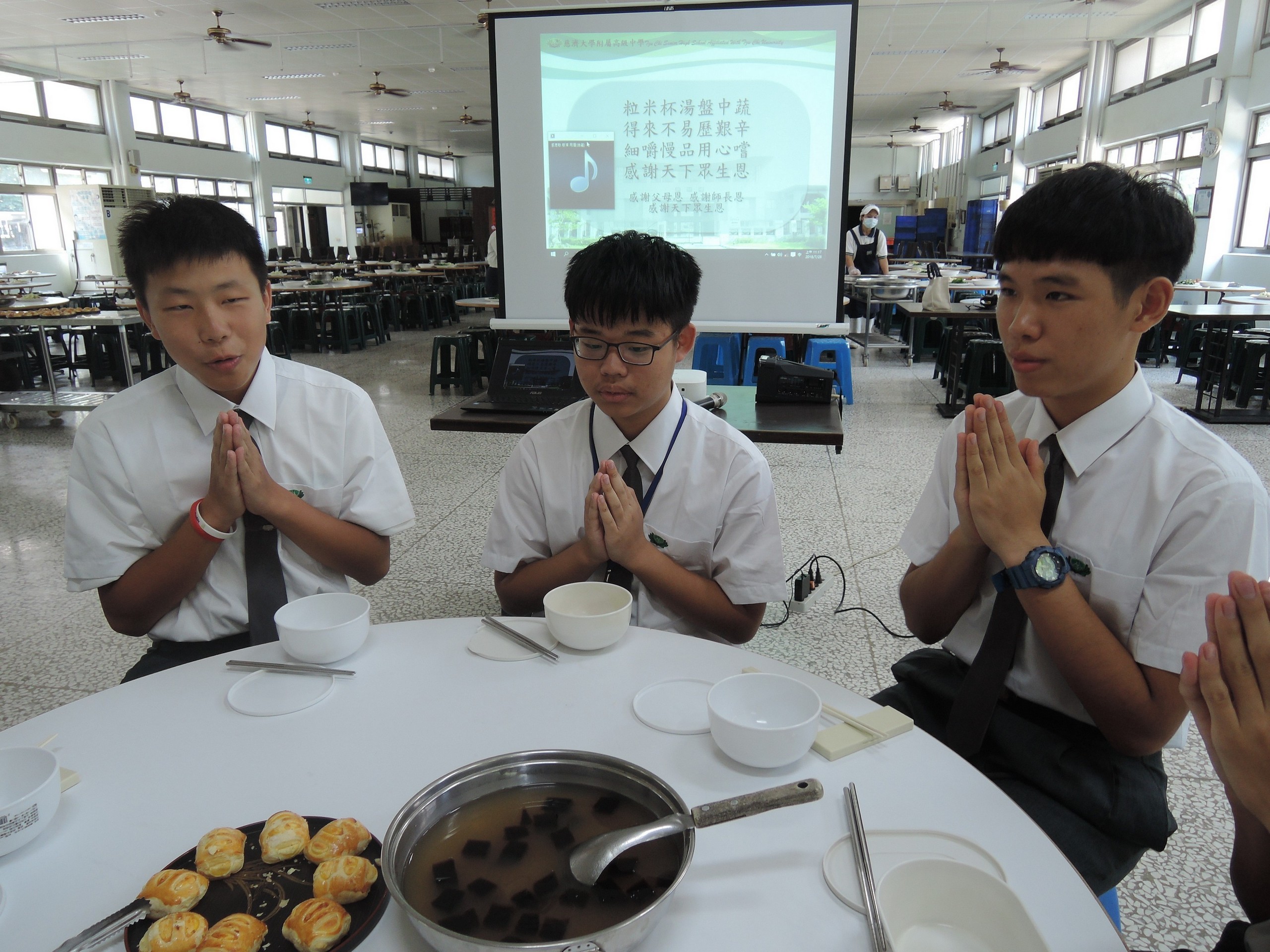 看到直升高中的孩子,「食字路口」龍口含珠,好莊嚴的威儀喔,新生也正在學習中。
