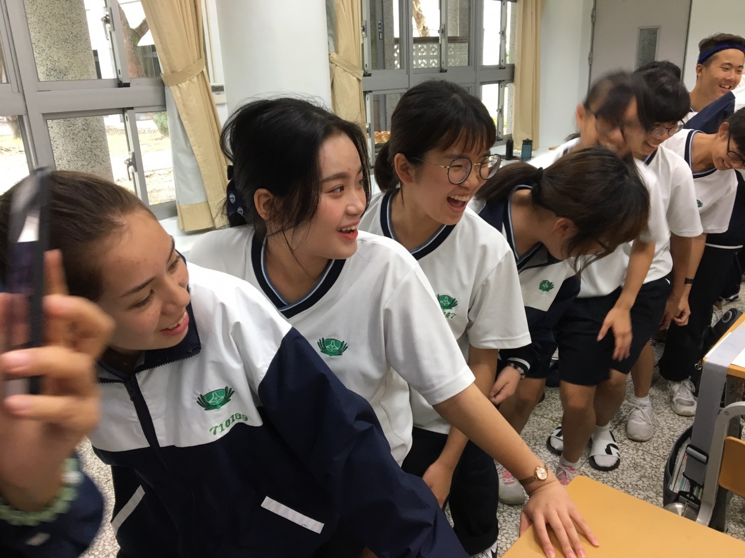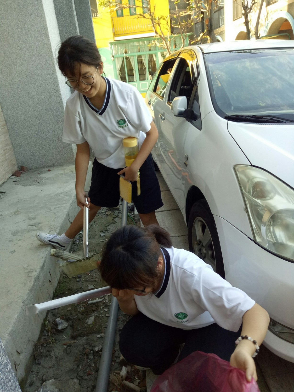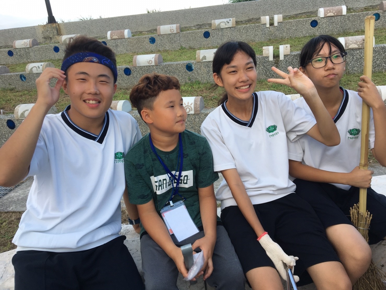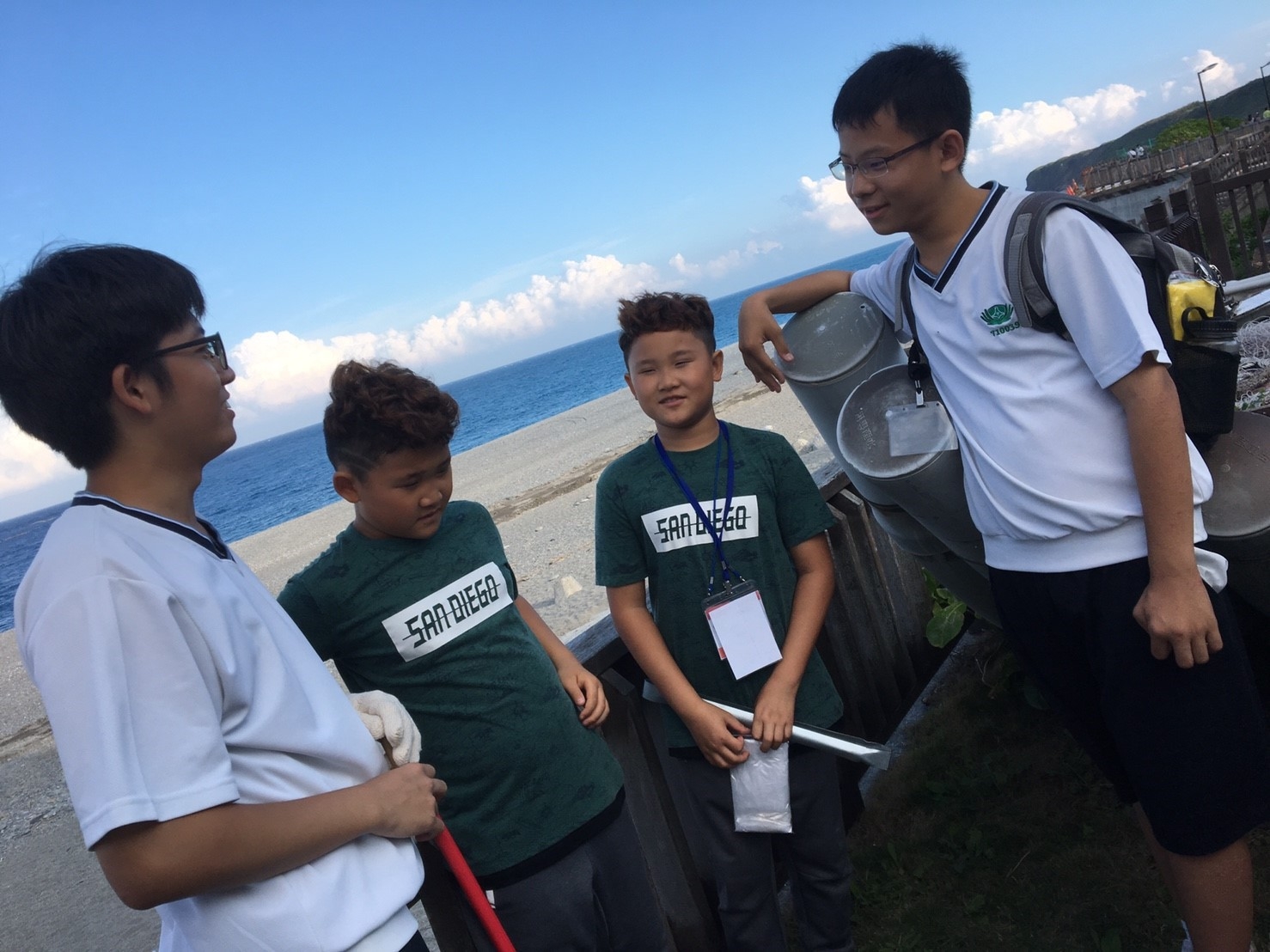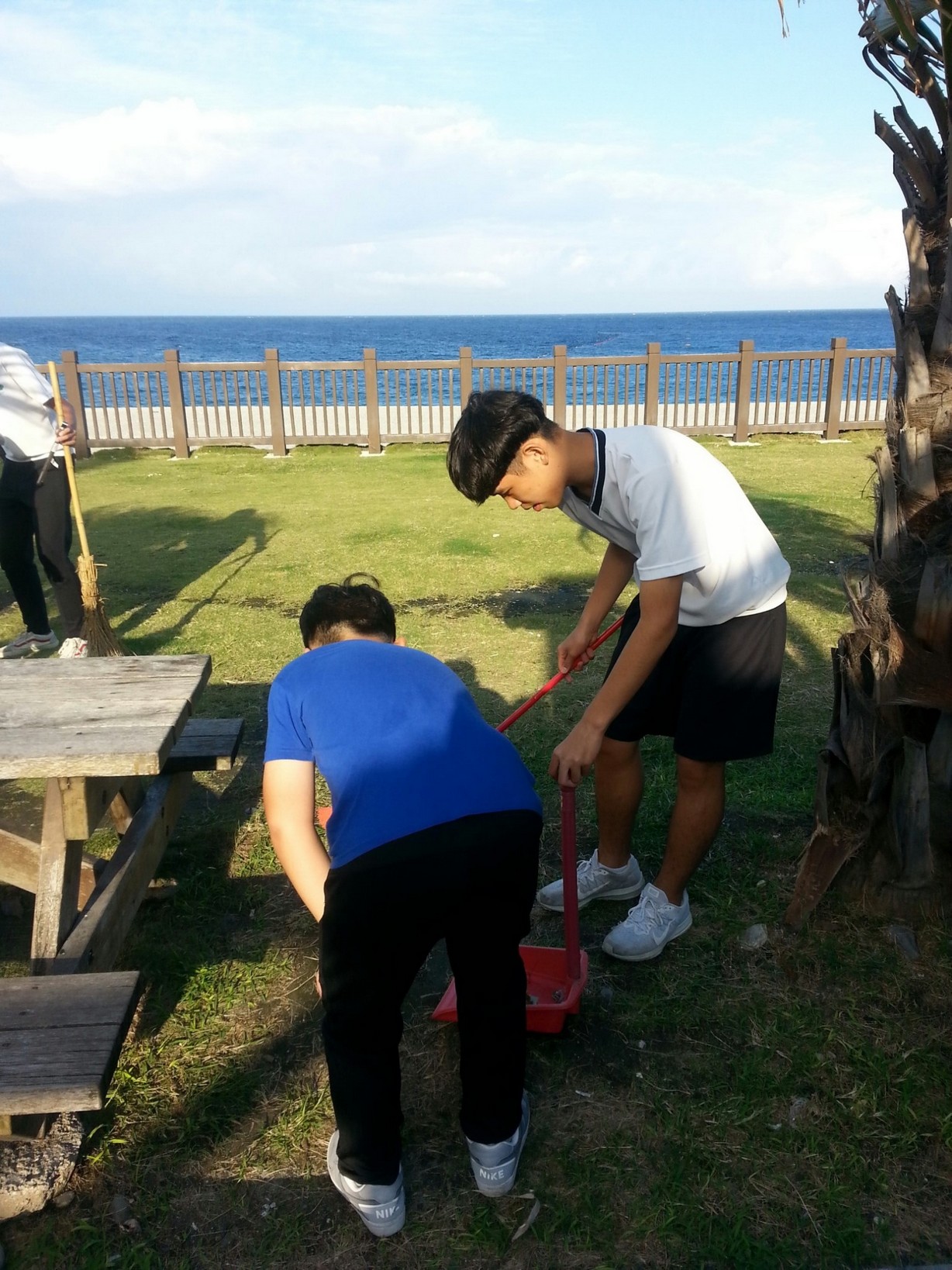 家聚完後,手護洄瀾一九久久,我們班是安排打掃七星潭旅遊服務中心周邊的環境,每個孩子用心打掃,讓七星潭的環境更亮麗。更幸運的是我們班與這次來的韓生一起打掃,一對一孩子帶領一起打掃,班上有二位韓國學生剛好懂得韓語,是金蕙瀞與李制奎兩位同學,承勳承擔我們班上的小記者,要採訪這次韓生一起打掃的心得,看他們真的有板有眼不輸專業的記者,一位訪問一位翻譯,孩子發揮她們的專長。