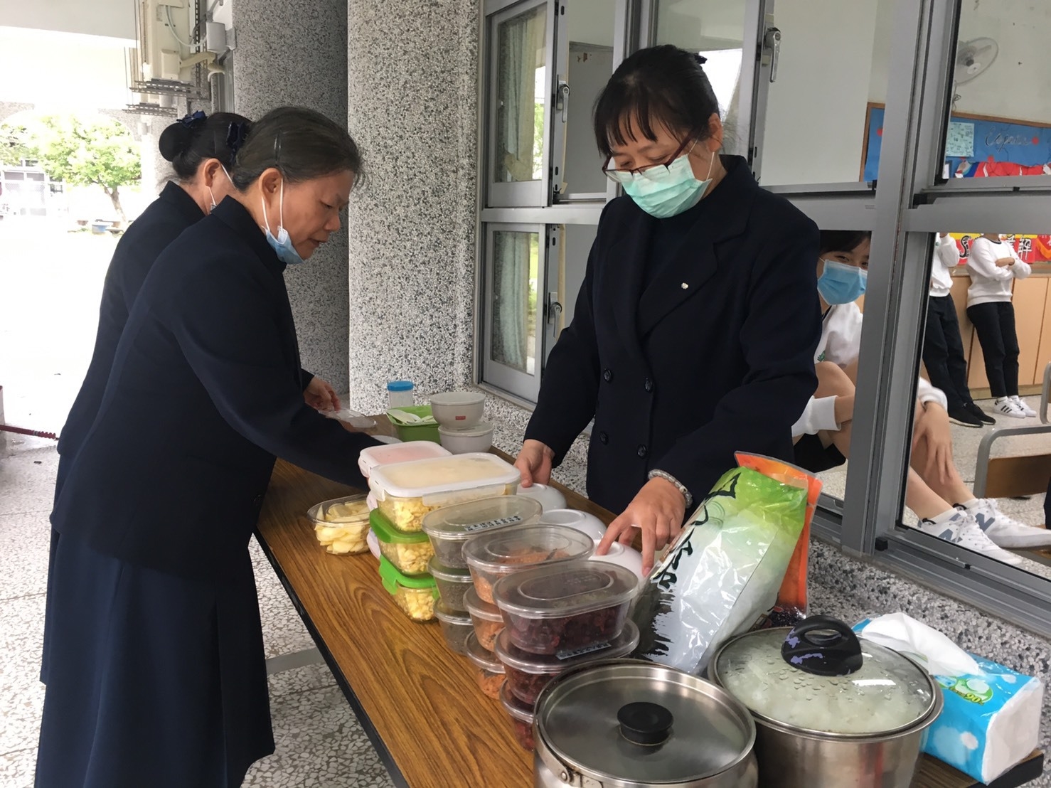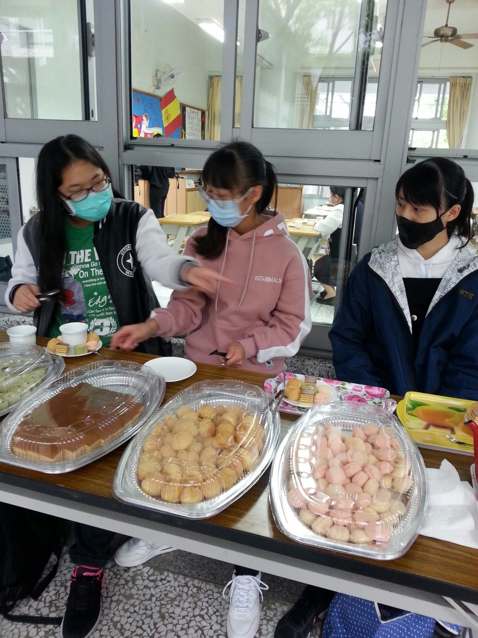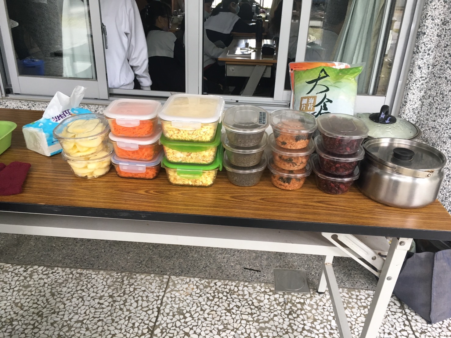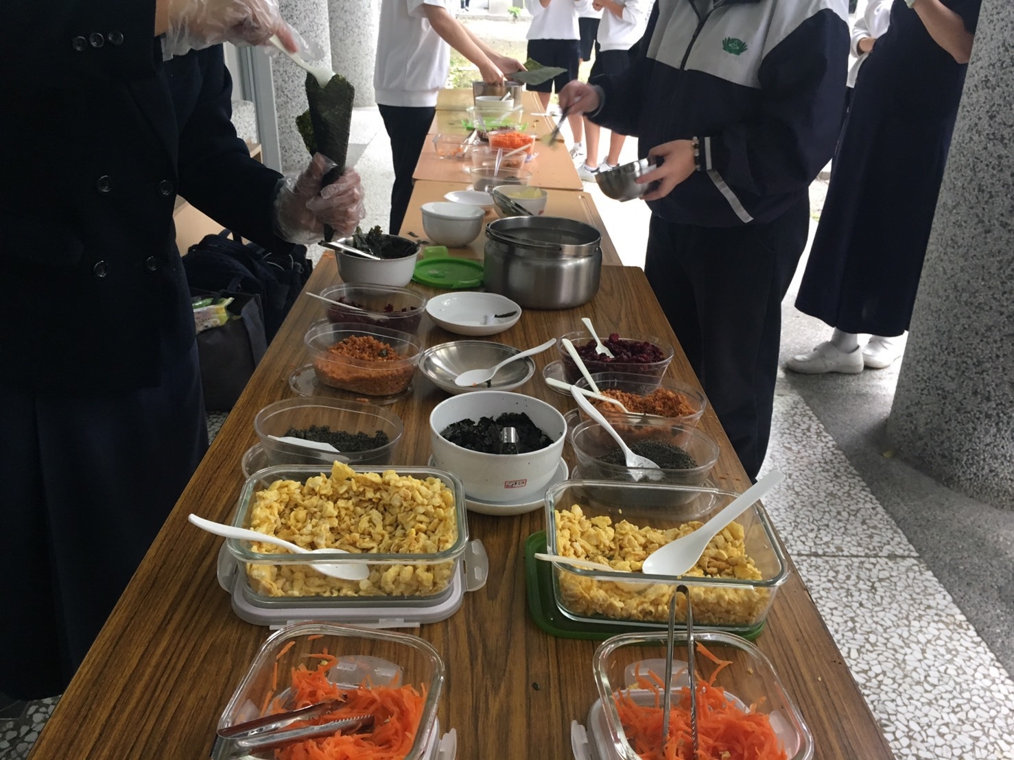 今天班上二位孩子因流感而被隔離,全班師生包括懿德媽媽進教室也需帶上口罩。今天懿德媽媽準備的點心是海苔手